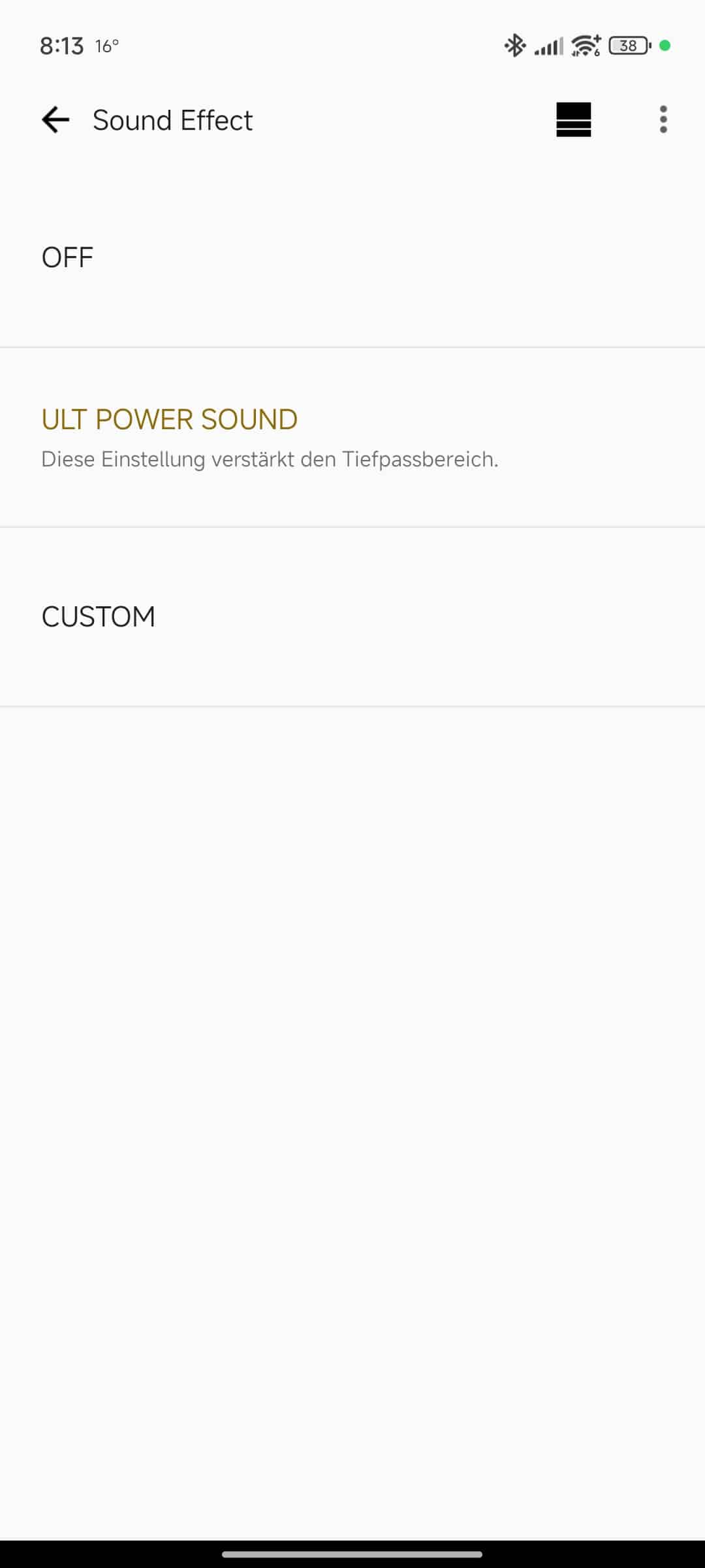 Der farblich leuchtende und Licht reflektierende ULT-Button bildet rechts den Abschluss des Kontrollpanels. Hier kann das namensgebende Soundprofil aktiviert oder ausgeschaltet werden, doch dazu später mehr.