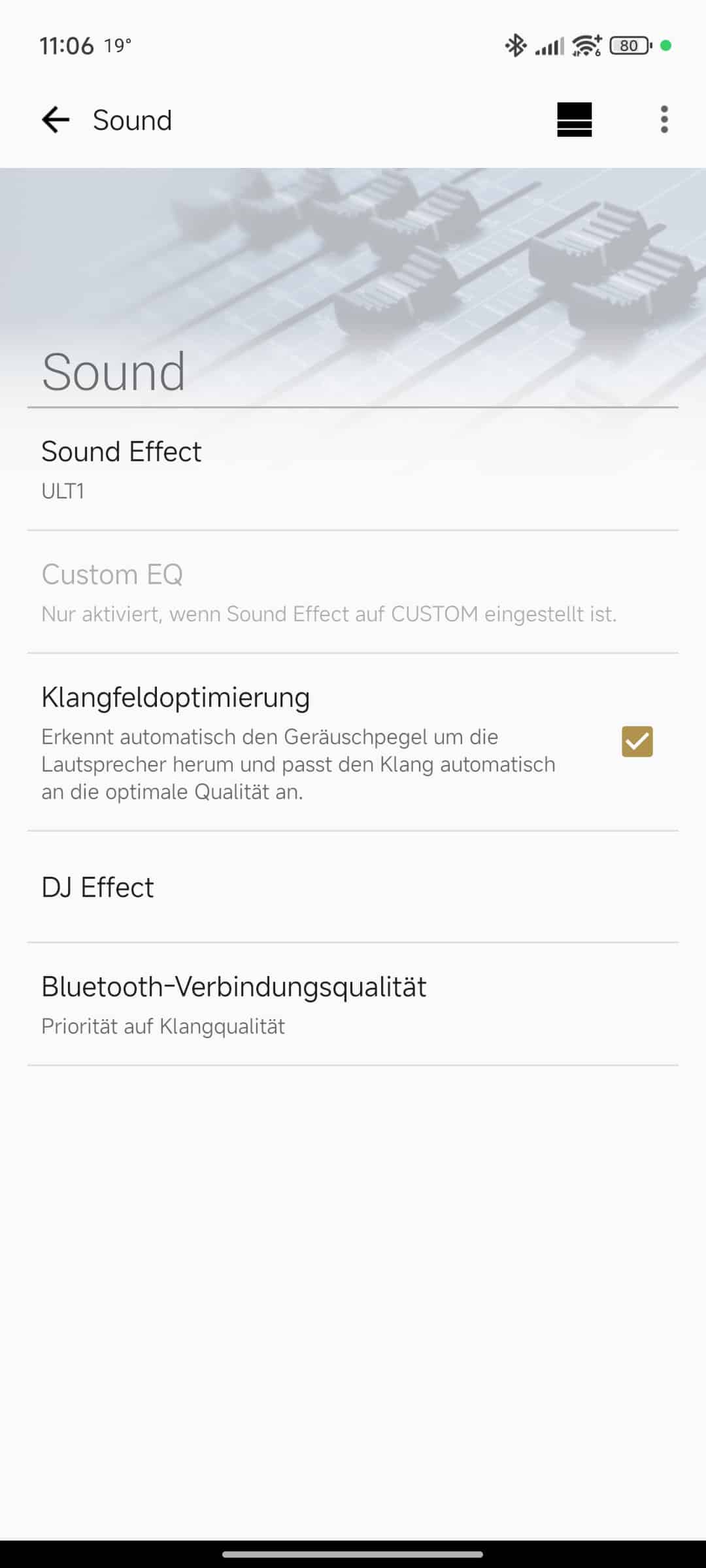 Ala Begleit-App kommt Sony Music Center zum Einsatz, das kostenlos auf iOS und Android angeboten wird. Die Basis-Funktionen lassen sich hier ebenfalls steuern, außerdem könnt ihr weitere Einstellungen vornehmen, darunter ein einstellbarer Equalizer, die Auswahl der Audio-Codecs oder eine Klangfeldoptimierung.