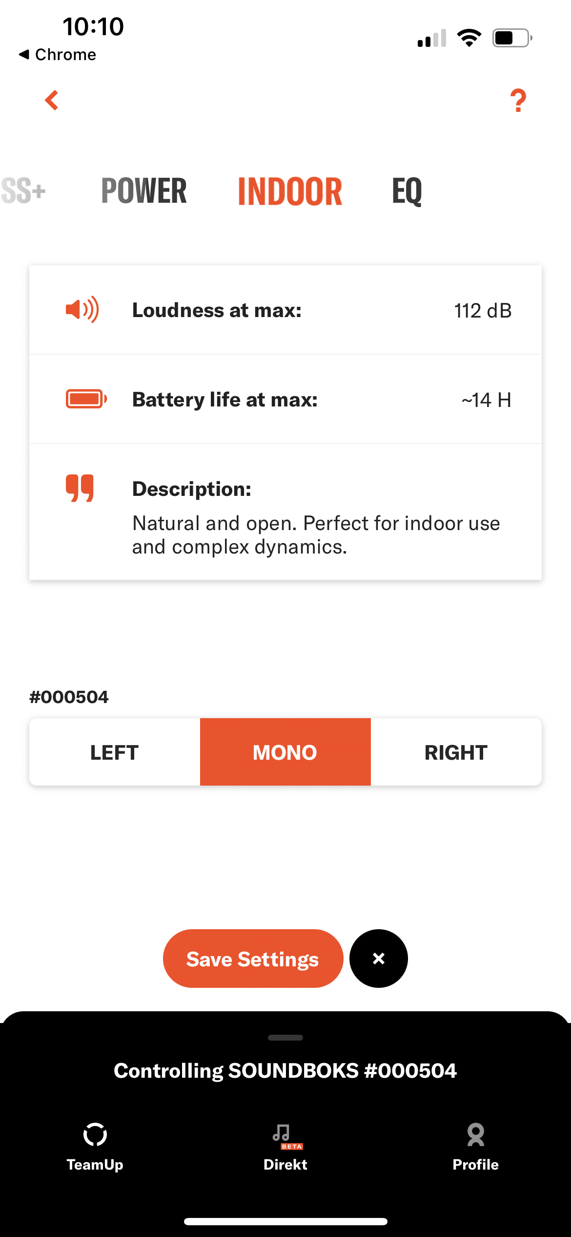 „Bass+“ ruft dabei die Maximalleistung der Soundboks Go ab und kommt auf unglaubliche 121 Dezibel Lautstärke. Allerdings sinkt hier, beim Regler auf Anschlag, die Akkulaufzeit auf rund 6 Stunden. Der „Power“-Modus liegt mit maximal 119 dB minimal darunter, lässt den Speaker aber rund 10 Stunden lang durchhalten und rückt den Bass dabei nicht so stark in den Vordergrund. Der „Indoor“-Modus soll den neutralsten Klang bieten, kommt „nur“ auf maximal 112 dB Lautstärke und resultiert in einer Akkulaufzeit von knapp 14 Stunden auf maximaler Stufe. Hinzu gesellt sich ein 6-Band-Equalizer, mit dem wir die Frequenzen selbst feinjustieren und unsere Einstellung abspeichern dürfen.