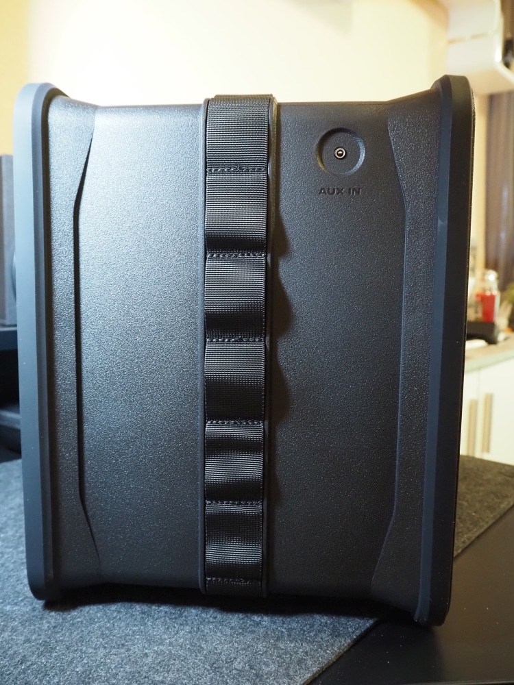 Nun gilt es eigentlich nur noch, die gewünschte Musik zu starten und schon kann es losgehen. Alternativ erfolgt die Musik-Wiedergabe über den an der Seite verbauten 3,5-mm-Klinkeneingang, der ebenfalls problemlos mit sämtlichen Quellen zusammenarbeitet – zumindest, wenn man denn über ein entsprechendes Verbindungskabel verfügt. Zudem lassen sich hier Musikinstrumente oder Mikrofone verbinden, um die Soundboks Go als Monitor im Studio zu betreiben.