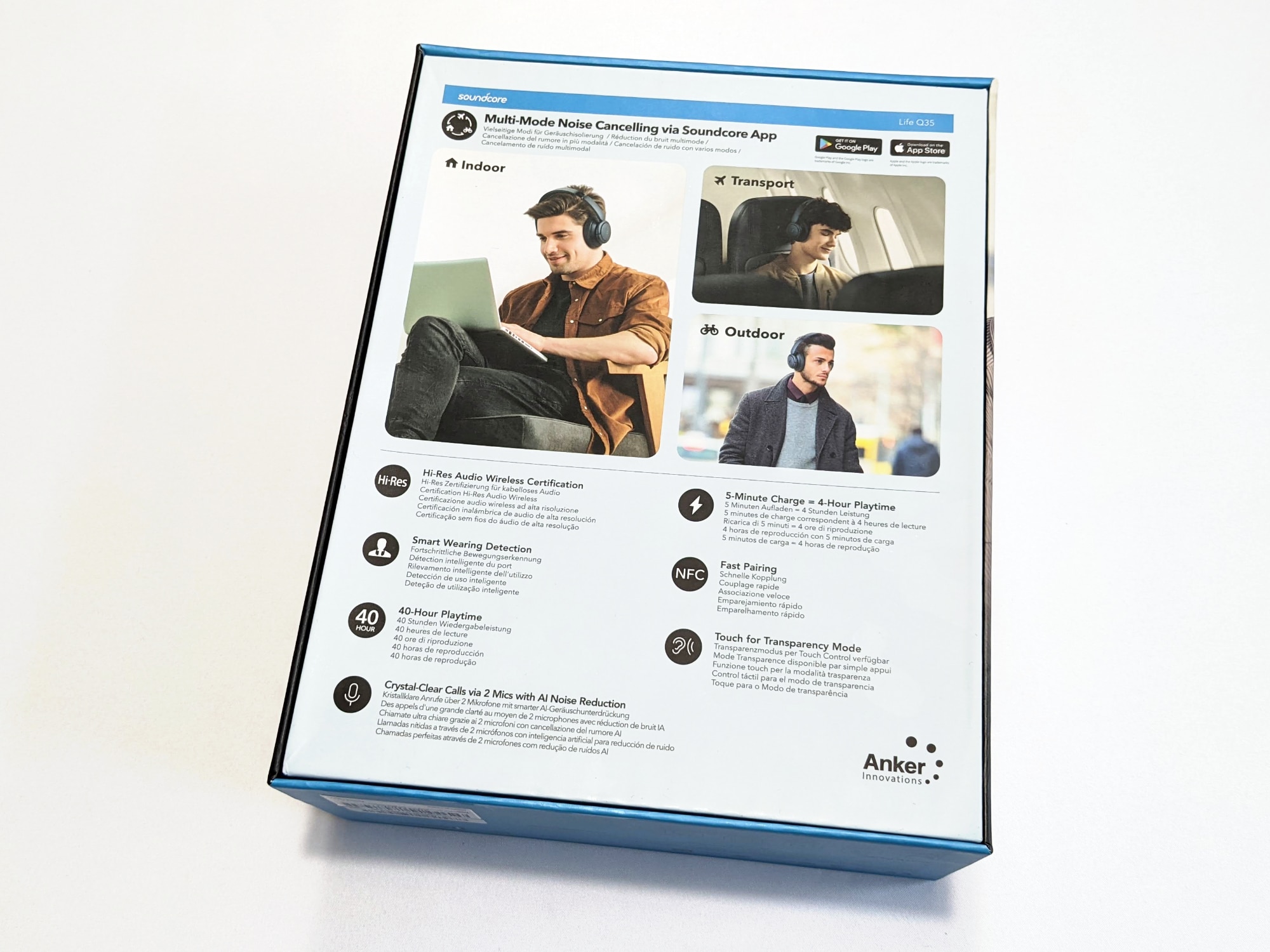 | Lieferumfang | Soundcore Life Q35, USB-C-Ladekabel, Klinkenkabel, Flugzeug-Adapter, Stofftasche für Kabel, Transport-Case, Bedienungsanleitung |