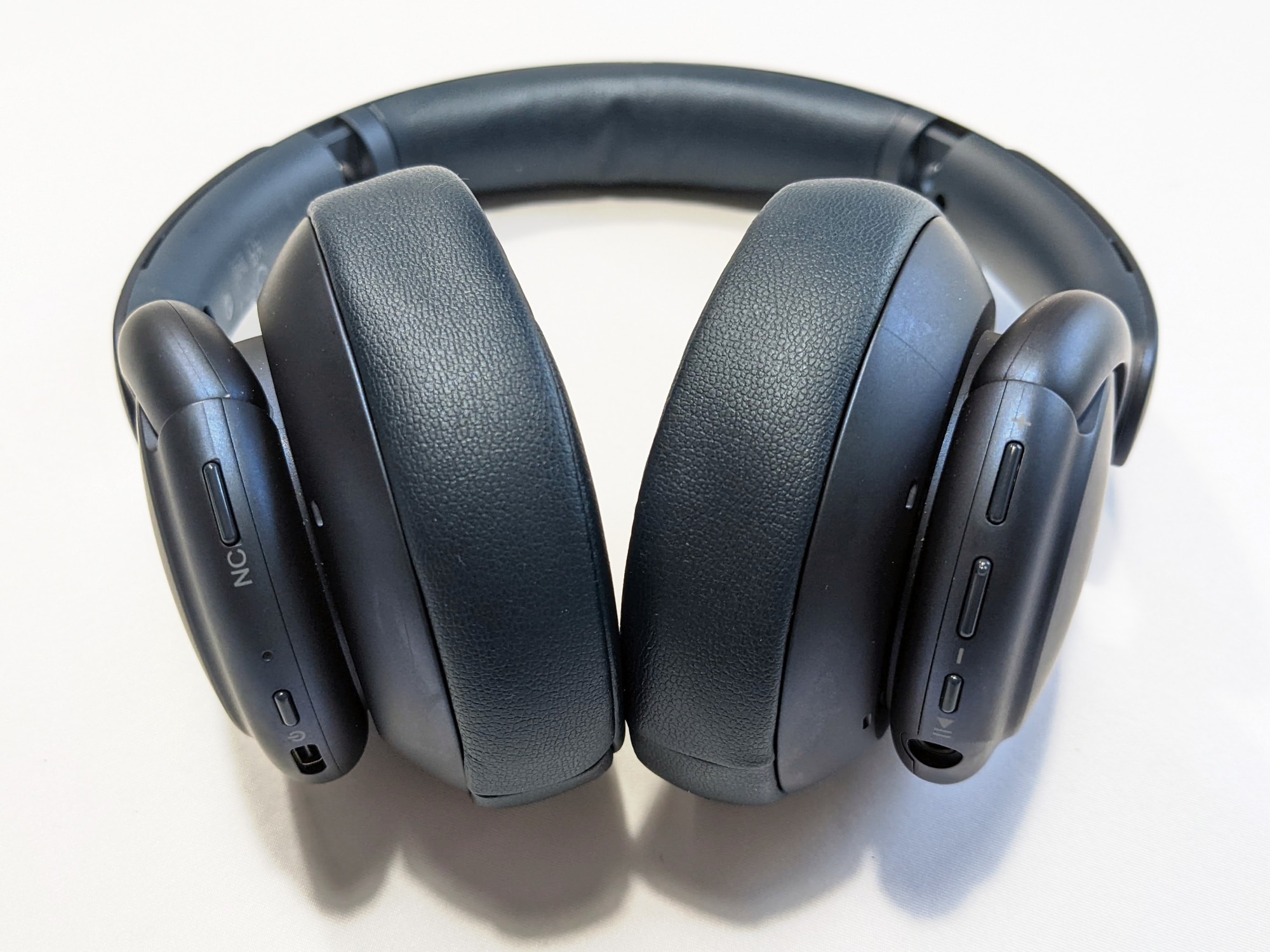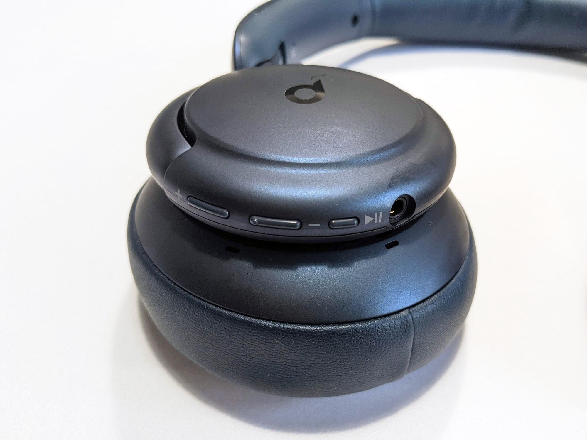Die Bedienung der Over-Ear-Kopfhörer erfolgt, ausgenommen vom Transparenz-Modus, vollständig über Tasten. Auf Touch oder andere Besonderheiten verzichtet Soundcore größtenteils. An der linken Kopfhörermuschel befinden sich die Ein-/Aus-Taste, die NC-Taste sowie der USB-C-Anschluss. Rechts findet man drei Tasten zur Mediensteuerung sowie den Klinkenanschluss vor. Weiterhin befindet sich außen an der rechten Kopfhörermuschel eine einzige Touch-Bedienfläche, mit der der Transparenzmodus aktiviert bzw. deaktiviert werden kann.