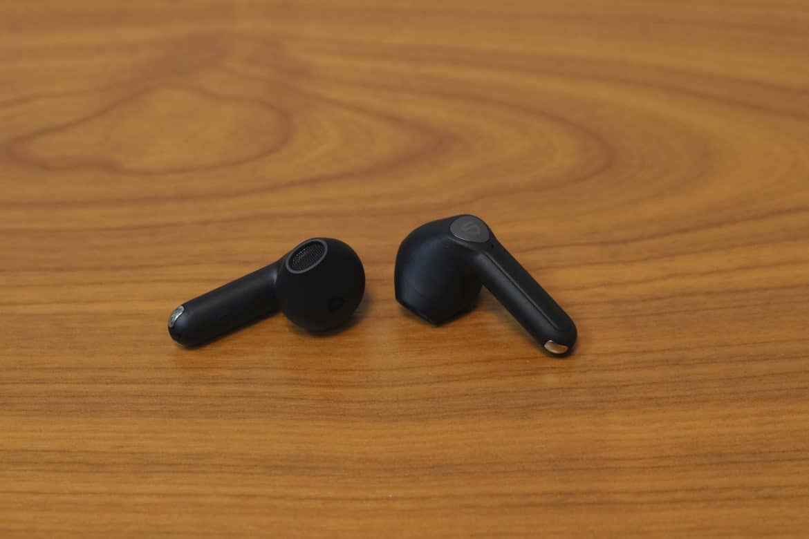 Die Ohrhörer selbst sind ebenfalls recht wertig verarbeitet. Hier gibt es nichts zu beanstanden. Angenehm fällt zudem das Gewicht auf: Lediglich rund 33 Gramm bringt das Ladeetui samt Inhalt auf die Waage, während die einzelnen Earbuds rund 5 Gramm wiegen. Sehr angenehm.