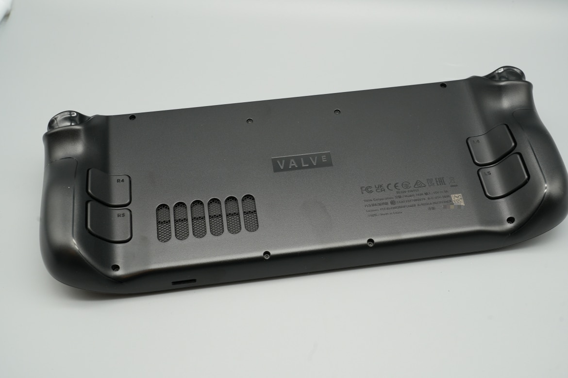 Unten verfügt das Steam Deck OLED über einen microSD-Kartenslot zur Speichererweiterung, während an der Rückseite vier zusätzliche Buttons zu finden sind. Am Design hat sich also nicht viel verändert, dennoch wirkt das OLED-Modell noch eine Spur robuster und wertiger. Die Verarbeitungsqualität ist weiterhin enorm hochwertig, so wirkt der PC-Gaming-Handheld wie aus einem Guss.
