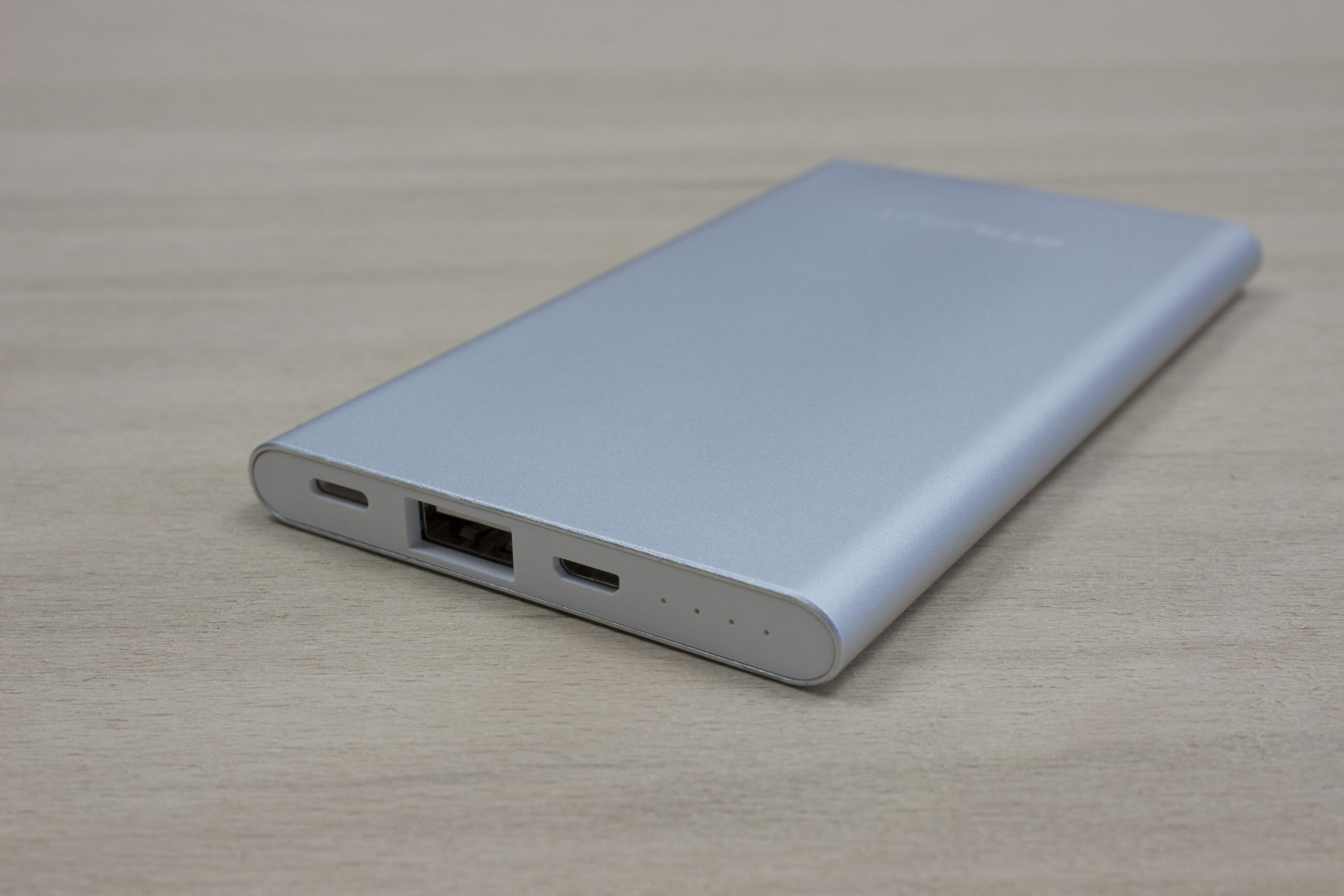 Bei der mittleren Powerbank der UltraSlim-Reihe werden 5.000 mAh aufgenommen. Nach der Umrechnung der Spannung stehen 3.700 mAh für das angeschlossenen USB-Gerät zur Verfügung. Tatsächlich kommen jedoch nur 3.500 mAh raus, damit ist die Effektivität jedoch höher als beim kleineren Modell, sie liegt bei 94,59 Prozent. Von den angegebenen 5.000 mAh kommen 70 Prozent bei eurem Smartphone an.