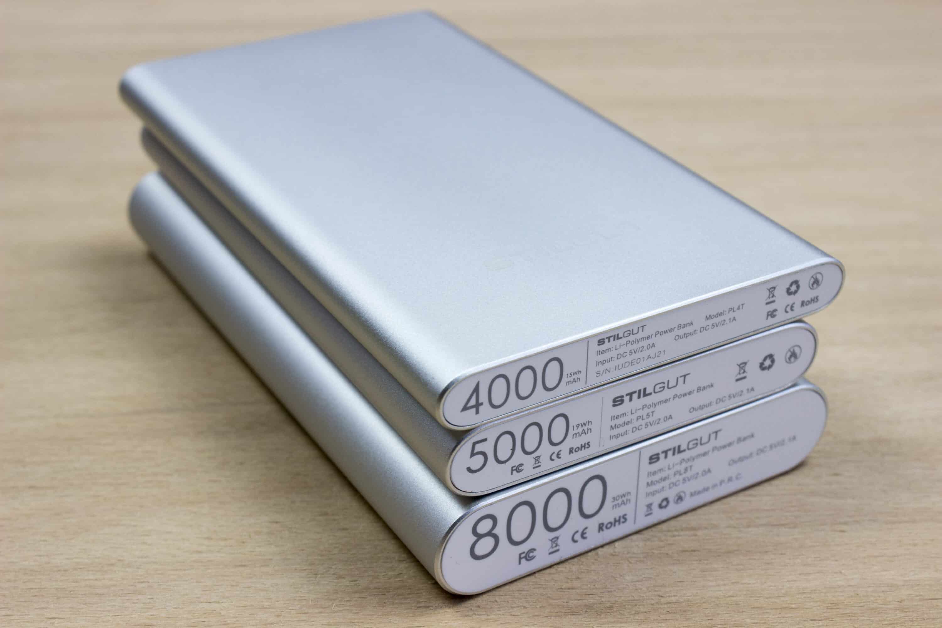 Das deutsche Unternehmen StilGut ist vor allem für seine hochwertigen Hüllen und Cover bekannt, doch es bietet noch mehr Zubehör für Smartphones an. Darunter auch Powerbanks, von denen wir uns nun die UltraSlim-Serie angeschaut haben. Dabei hast du die Auswahl zwischen 4000, 5000 oder 8000 mAh. Farblich bleibt die Wahl zwischen silber und rosegold. Unsere Testmodelle sind alle in silber.