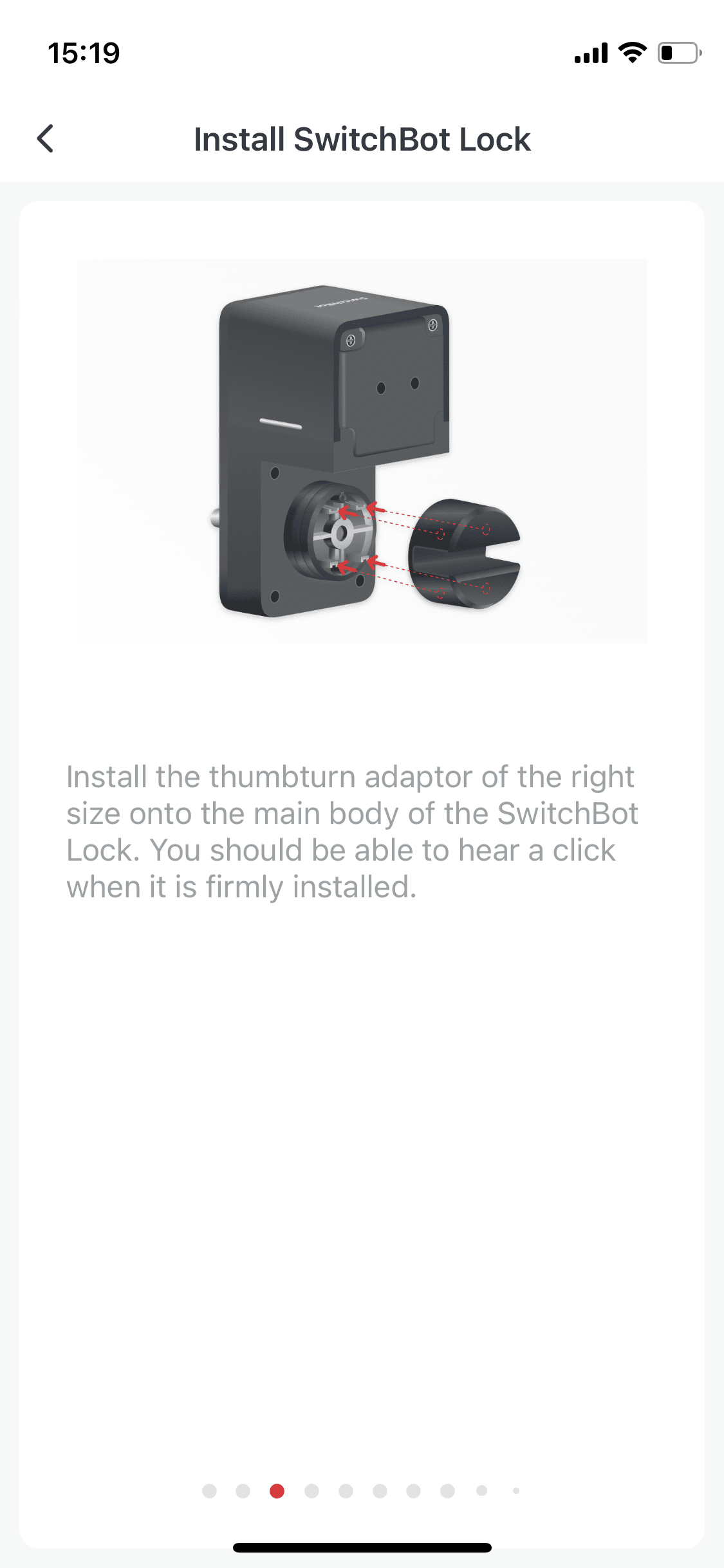 Nachdem die physische Installation vollbracht war, ging es ans Koppeln mit dem Smartphone. Und das war nicht minder einfach. Hierfür lädst du dir zunächst einmal die SwitchBot-App für iOS oder AndroidOS herunter. Ist dies geschehen, erstellst du dir ein passendes Konto und fügst über Tippen auf das Plus-Zeichen das SwitchBot Lock als neues Gerät hinzu. Damit das Schloss erkannt wird, muss man die Batterielasche entfernen. Im selben Moment fängt die Status-LED an, Blau zu blinken. Das signalisiert den Pairing-Modus, was die Kopplung mit der App ermöglicht.