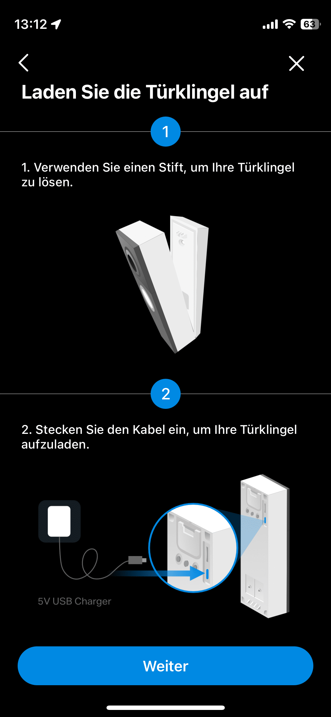 Wer die Klingel hingegen an einer herkömmlichen Außenwand und/oder recht grobporigen Wand anbringen möchte, sollte auf einen Bohrer zurückgreifen. Die passenden Schrauben und Dübel liegen dem Lieferumfang bei. Bevor du die Klingel dann zum ersten Mal anbringst, solltest du allerdings zunächst noch einmal den Akku vollständig aufladen. Eine komplette Ladung nimmt etwa sieben Stunden in Anspruch. Da der Akku jedoch in der Regel mit etwas Restkapazität daherkommt, geht das meist schneller.