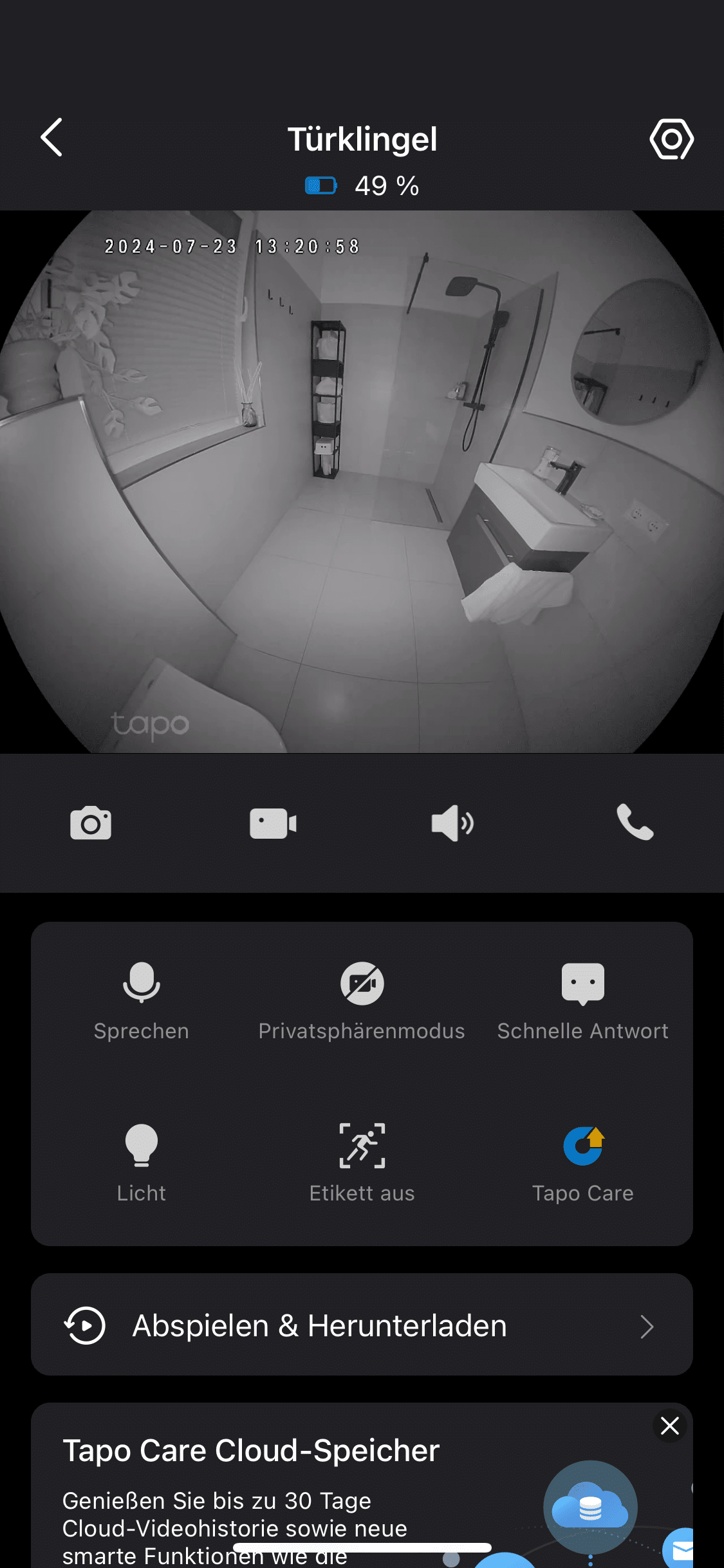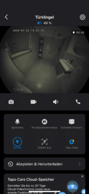 Allerdings ist das Ganze dann auch mit monatlichen Kosten verbunden. Die Cloud namens tapo care lässt sich 30 Tage lang kostenfrei ausprobieren. Anschließend kostet der Dienst im Basis-Modell mindestens 2,99 Euro im Monat. Ein Feature, das die Tapo D235 stets kostenfrei bietet, ist Zwei-Wege-Audio. Wenn du Besuch bekommst, kannst du mit der Person vor deiner Haustür bequem über dein Smartphone kommunizieren.