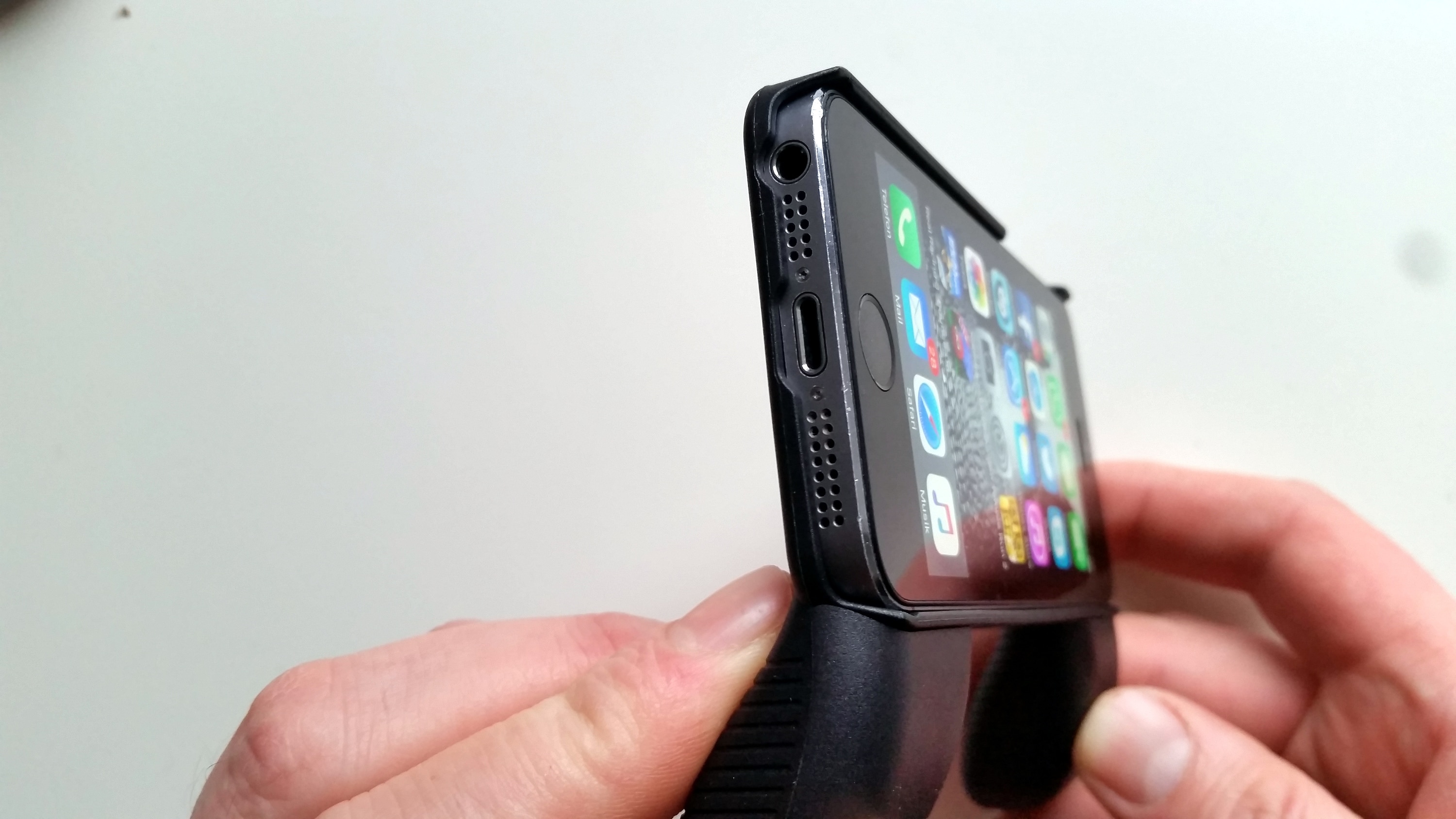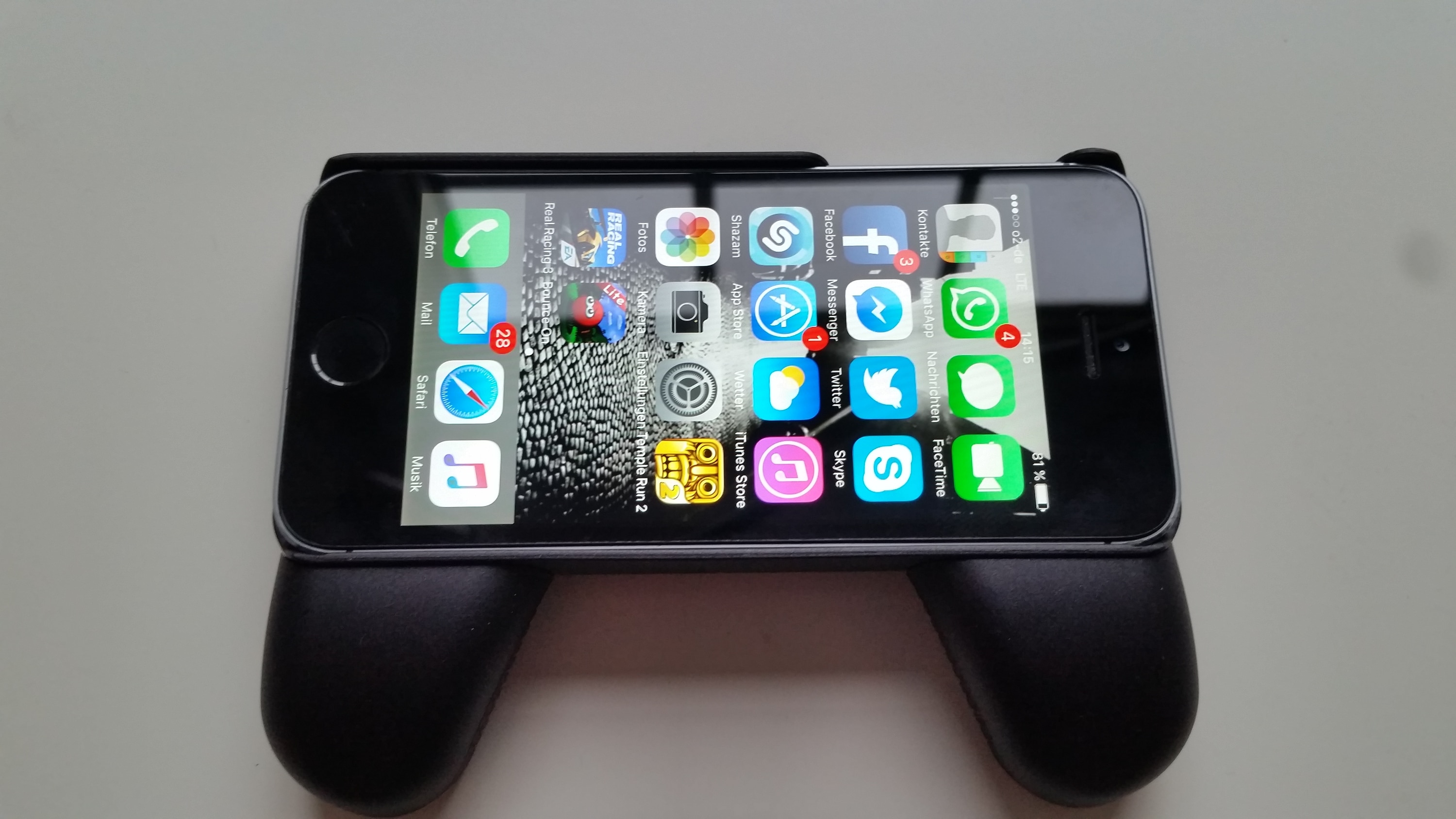 Nach mehreren Minuten macht sich der nächste Vorteil bemerkbar. Ergonomisch kann man es eigentlich nicht nennen, wie man das Phone beim Gaming hält. Da schmerzt es schnell an den Daumen, gerade bei größeren Händen, da man sie überdehnt. Hier hingegen bleibt alles entspannt und ich muss die Däumchen nicht permanent knicken. Für mich ist das sehr viel angenehmer als ohne Halterung, zumal das iPhone 5 nun nicht grade mit einem großem Display glänzt.