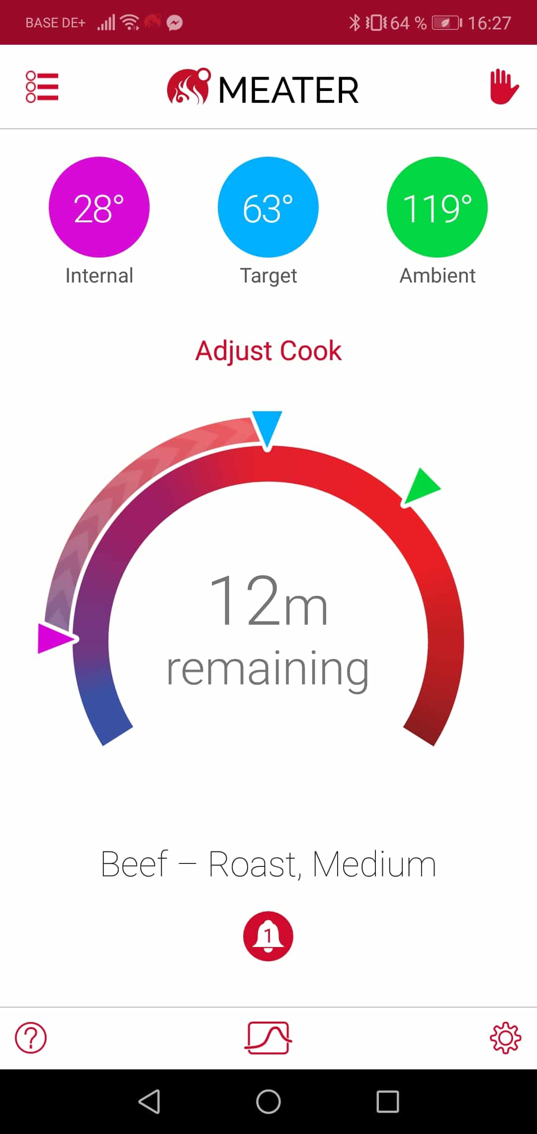 Der größte Kritikpunkt ist zum Zeitpunkt dieses Artikels bereits behoben worden, denn die App ist mittlerweile auf Deutsch zu haben. Der Meater braucht nicht lange zum Laden und die Ladestation aus Holz macht sogar noch einiges her. Die Einrichtung der App ist selbsterklärend und schön bebildert. Eigene Einstellung können gespeichert und später immer wieder ausgewählt werden. Die angezeigte Zeit bis das Fleisch wie gewünscht gegrillt ist stimmte im unserem Test, so das unser Rump-Steak wirklich „Medium Well“ war.