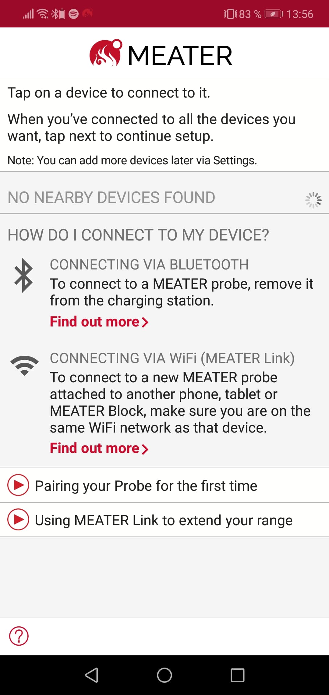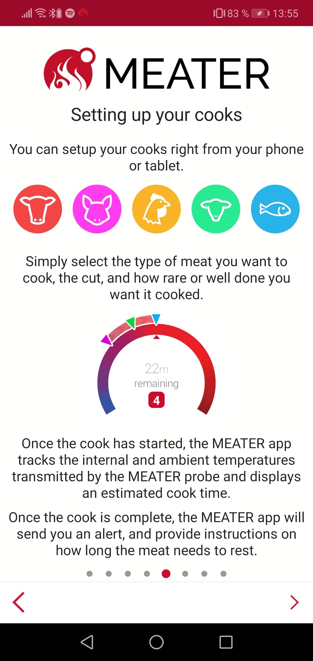 Durch die Bluetooth-Verbindung ist die Einrichtung denkbar einfach. App aus dem App Store von Google oder Apple herunterladen und einfach der Anweisung aus dem Bildschirm folgen. Es folgt noch eine kurze Tour durch die Funktionen und den Umfang von Meater beziehungsweise der weiteren Produkte. Zum Zeitpunkt des Tests (18.07.) war die App noch komplett auf Englisch, mittlerweile wurde die App auch auf Deutsch lokalisiert.