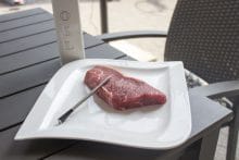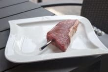 Wie auf den Bildern zu erkennen, sind wir zufrieden mit dem Ergebnis – obwohl wir Roastbeef statt Rump-Steak ausgewählt haben. Im Grunde ist es ja sowieso das gleiche Fleisch. Mit der Hand solltet ihr den Meater nicht aus dem Fleisch ziehen, es kommt ja direkt vom Grill und ist entsprechend heiß. Im Fleisch bleibt zwar ein kleines Loch, da der Meater doch relativ dick ist, Fleischsaft tritt zum Glück nicht aus.