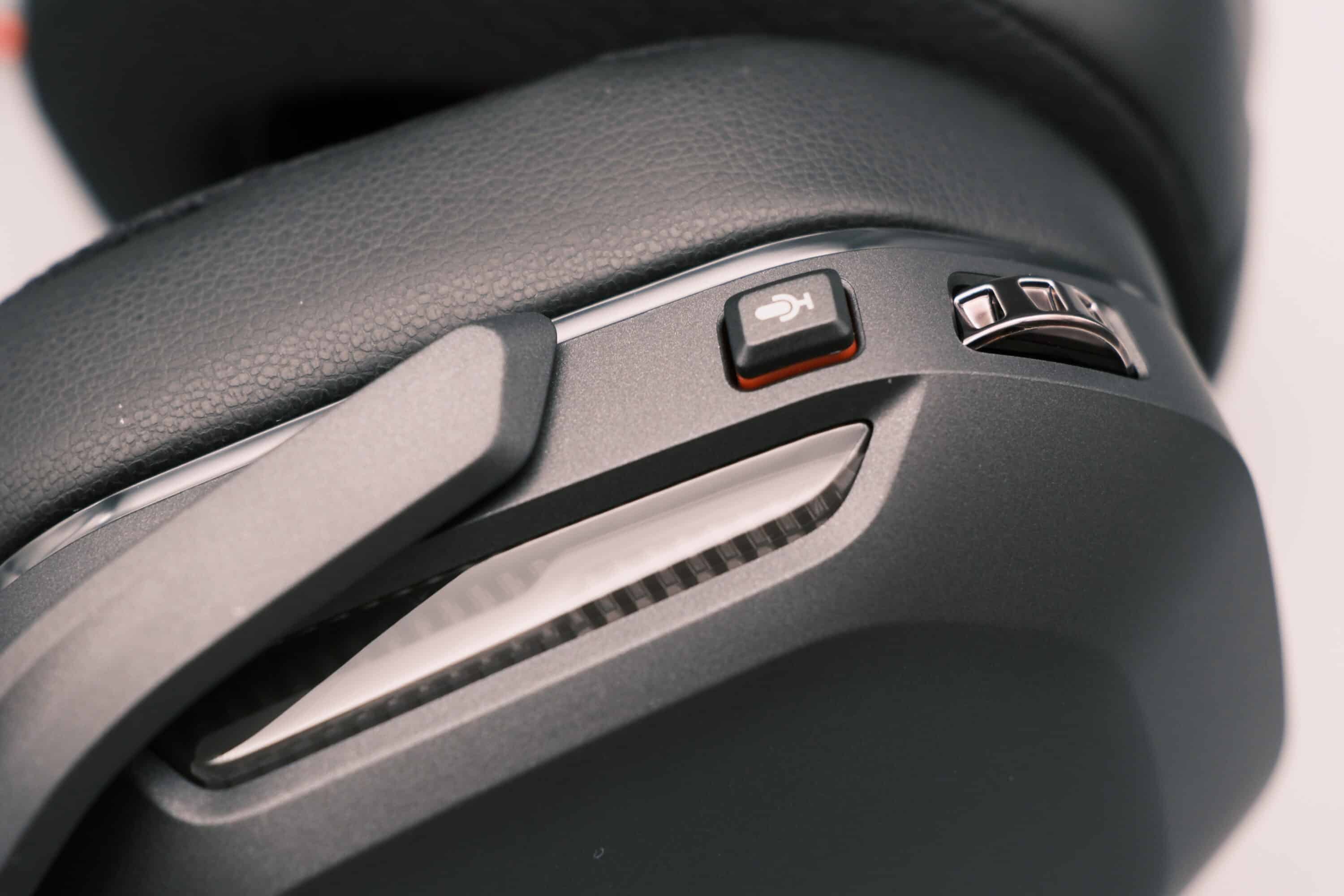 Klanglich sorgt DTS Headphone: X für einen virtuellen 7.1-Raumklang. Auch das Bedienkonzept wirkt angenehm simpel und durchdacht. Auf der linken Seite findet ihr eine Taste zum Stummschalten des Mikrofons, sowie ein Lautstärkedrehrad das angenehm griffig, aber nicht gerastert ist. Links findet ihr zudem den Steckplatz für das Mikrofon, das magnetisch im Gehäuse gehalten wird.