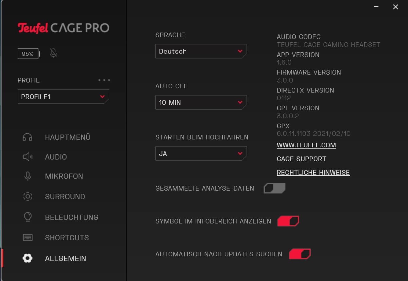 Wo wir schon bei der App sind: Diese erwies sich im Rahmen des Tests als etwas problembehaftet und konnte nach einem Neustart des PCs oftmals das angeschlossene Headset nicht finden. Obwohl dieses gerade Töne wiedergab. Hmpf.