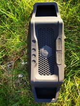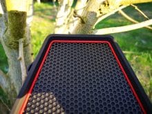 Die Verarbeitungsqualität ist auf hohem Niveau. Es wirkt Nichts billig, knackt oder knirscht und die Spaltmaße sind ausreichend klein. Wirklich sexy wirkt das Gerät aus meiner Sicht aber leider nicht. Dazu ist die Form zu asymmetrisch, die Gummierung zu pragmatisch und ein paar Inkonsistenzen haben sich auch eingeschlichen. Beispielsweise ist das Abdeckgitter vorne aus Metall, hinten aus Kunststoff und die oberen Tasten sind ganz anders als die hinteren. Da wirkt ein Harman Kardon Go Play edler und ein JBL Extreme runder.