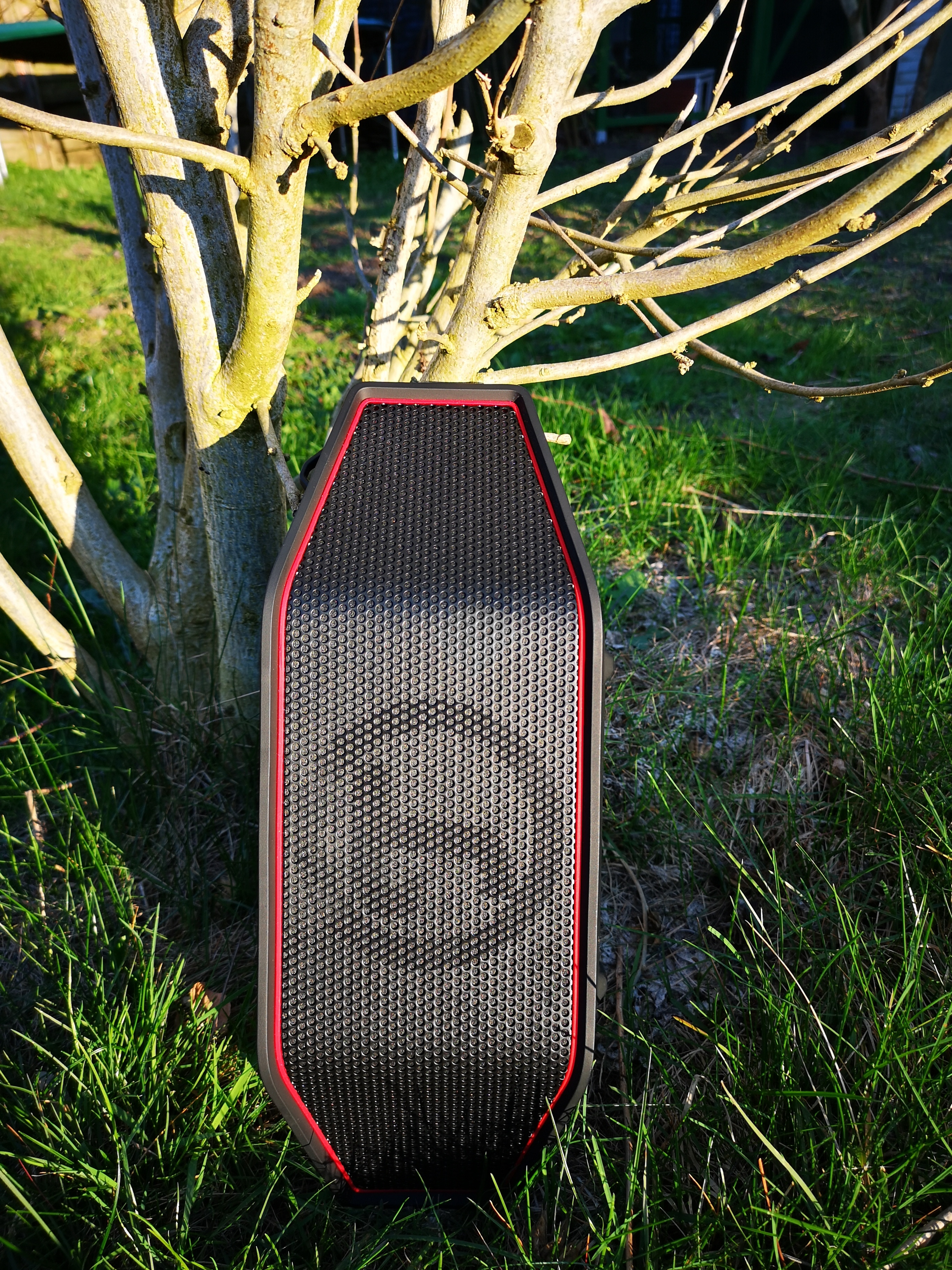 Was der Kleine – mit dem großen Klang – aber bietet, ist ein Schutz vor Feuchtigkeit und Spritzwasserschutz nach IPX5. Ein Bad sollte er dennoch nicht nehmen.