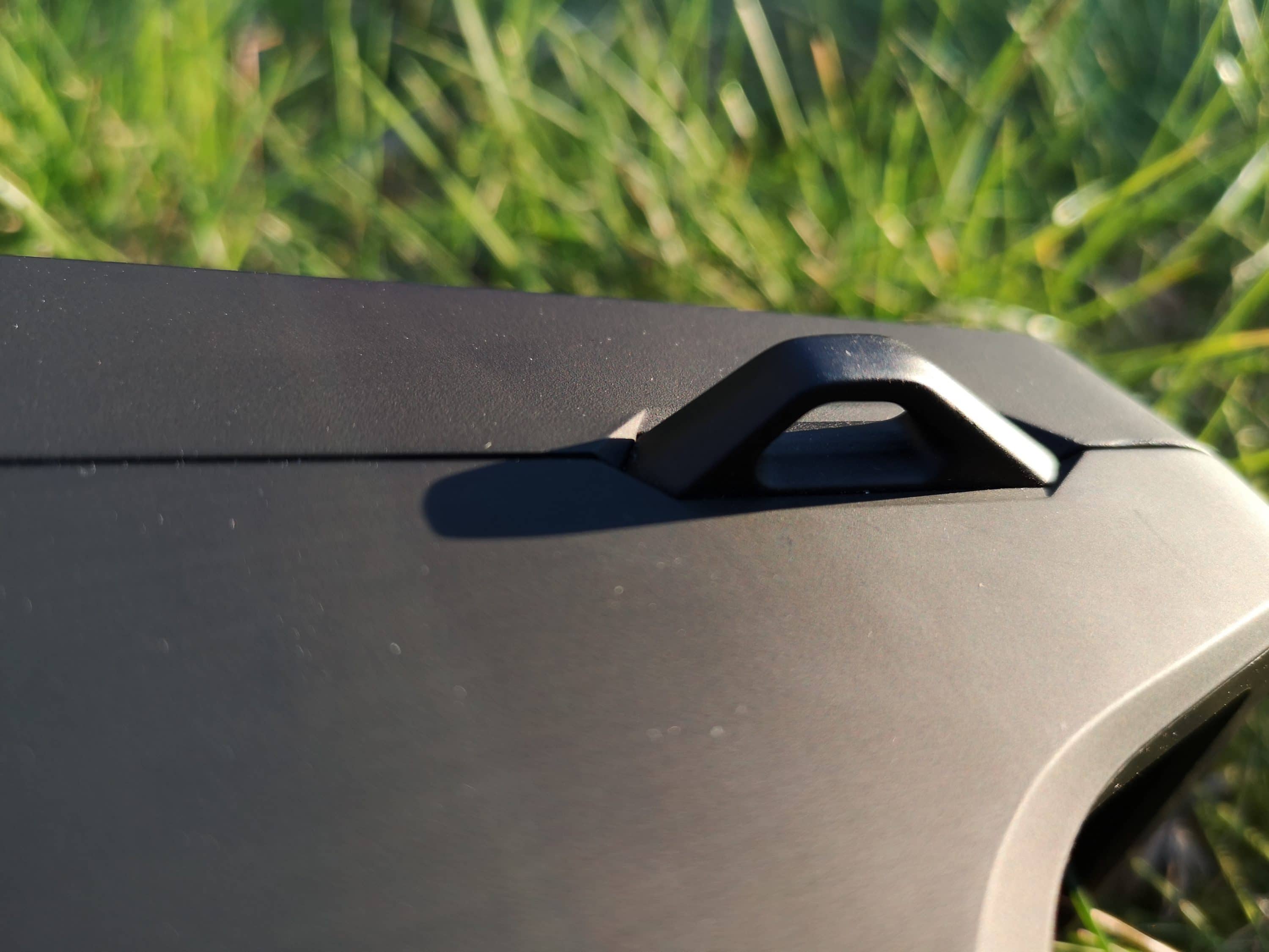 Nicht sofort erkennbar sind die zwei Griffmulden links und rechts, die ein sicheres, sogar einhändiges, Tragen ermöglichen.