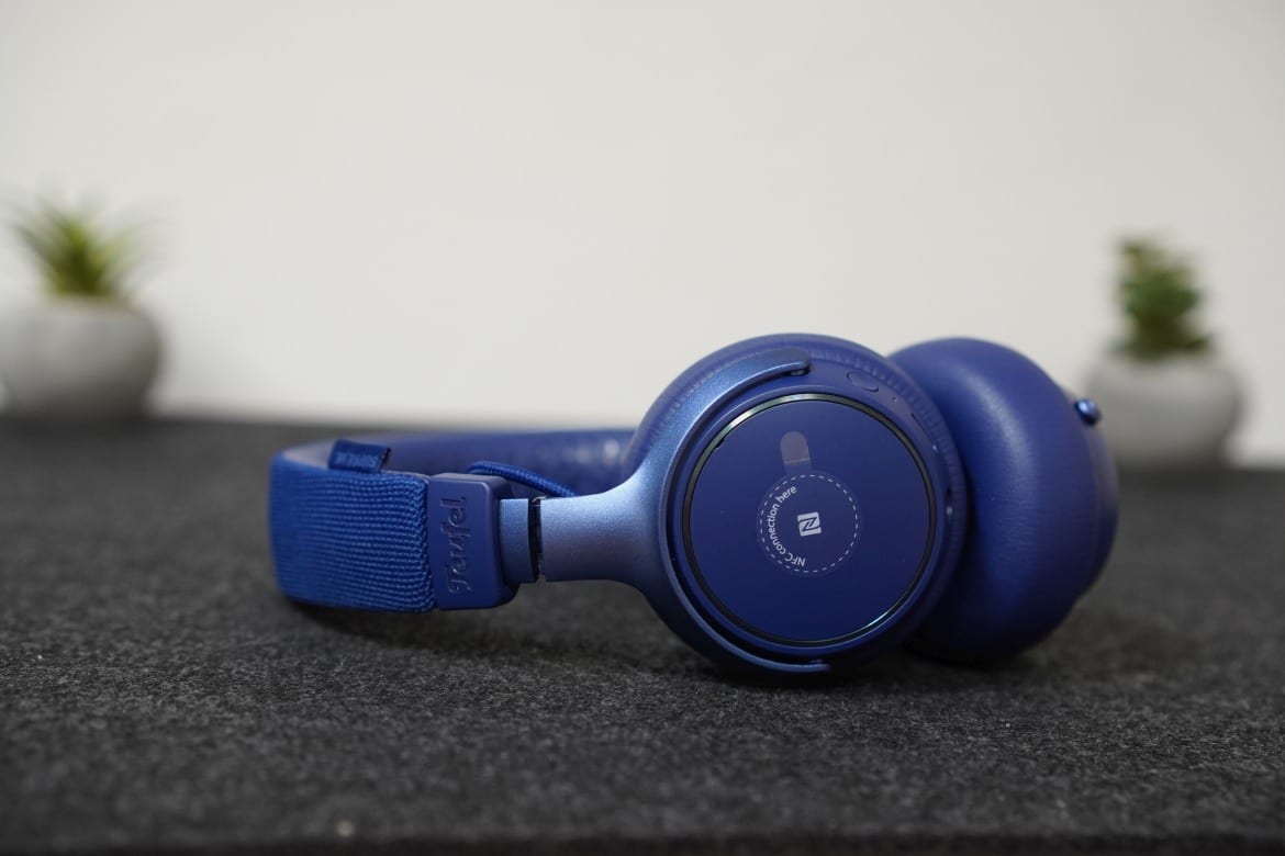 Die Größenverstellung erfolgt mithilfe eines Aluminiumbandes samt 11 Rasterungen. Abgerundet wird das Design auf der linken Seite durch den Power-Button, der auch als Pairing-Knopf dient, den USB-C-Anschluss zum Laden und den Klinkenanschluss. An der Innenseite der rechten Ohrmuschel verbaut Teufel hingegen einen griffigen Bedienknopf, der in vier Richtungen (oben, unten, links und rechts) bewegt werden kann und für die Musik- und Telefoniesteuerung zuständig ist. Die Außenseite der linken Ohrmuschel ist zudem NFC-fähig und ermöglicht dadurch eine noch schnellere Kopplung.