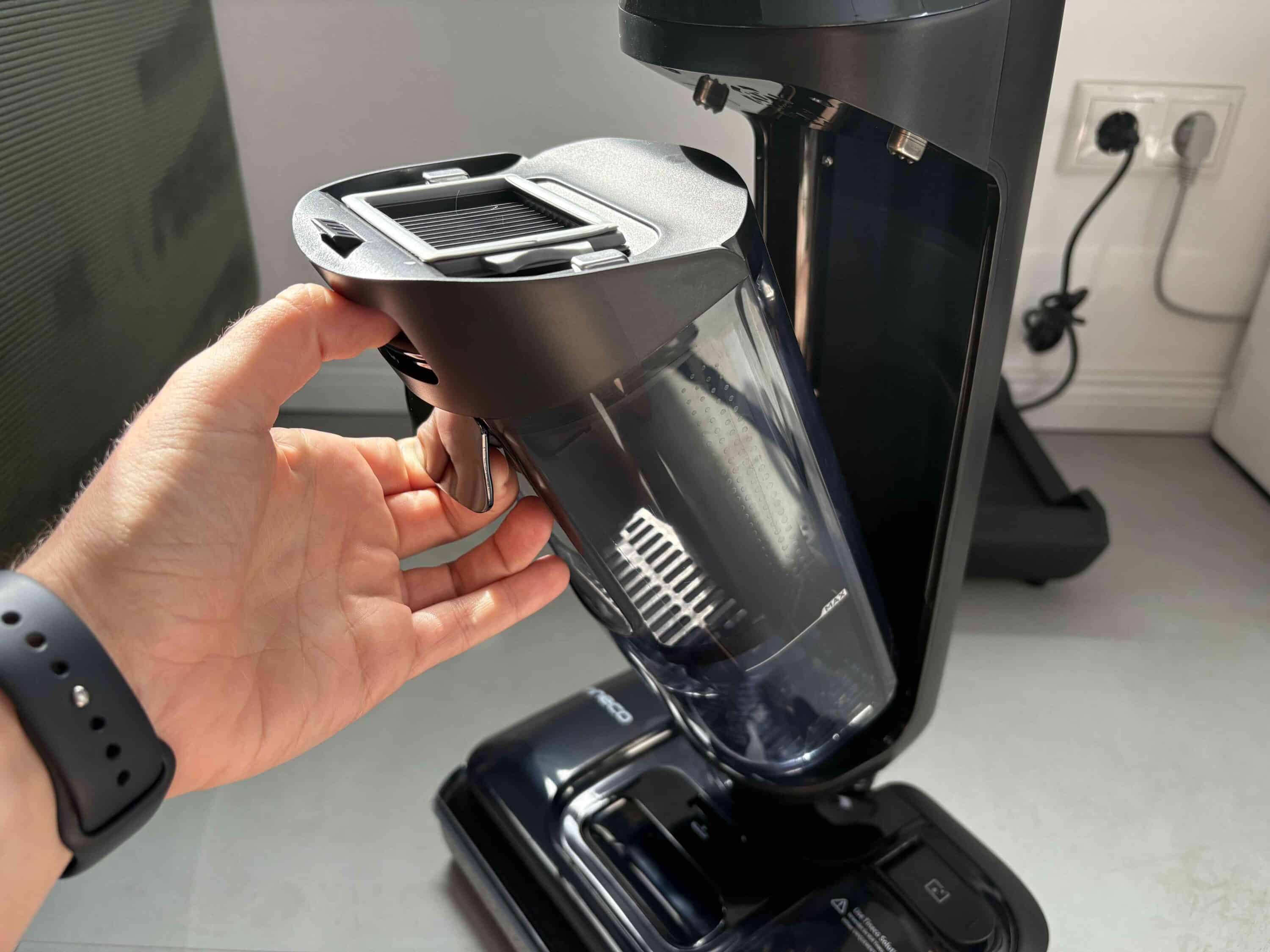 Mir reicht das gebotene Display zwar völlig aus, doch mittlerweile finde ich die Bildschirme der Konkurrenten wie einem Dreame H15 Pro (Test | € 549,00 *) einfach deutlich moderner. Doch Tineco scheint mittlerweile einfach einen anderen Fokus zu haben. So setzt das Unternehmen ganz offensichtlich auf große Wassertanks. Im Hauptkörper finden wir nämlich den Schmutzwassertank, der mit einem Volumen von 720 ml knapp 240 ml mehr Platz für Unrat bietet als es beim Flaggschiff von Dreame der Fall ist.