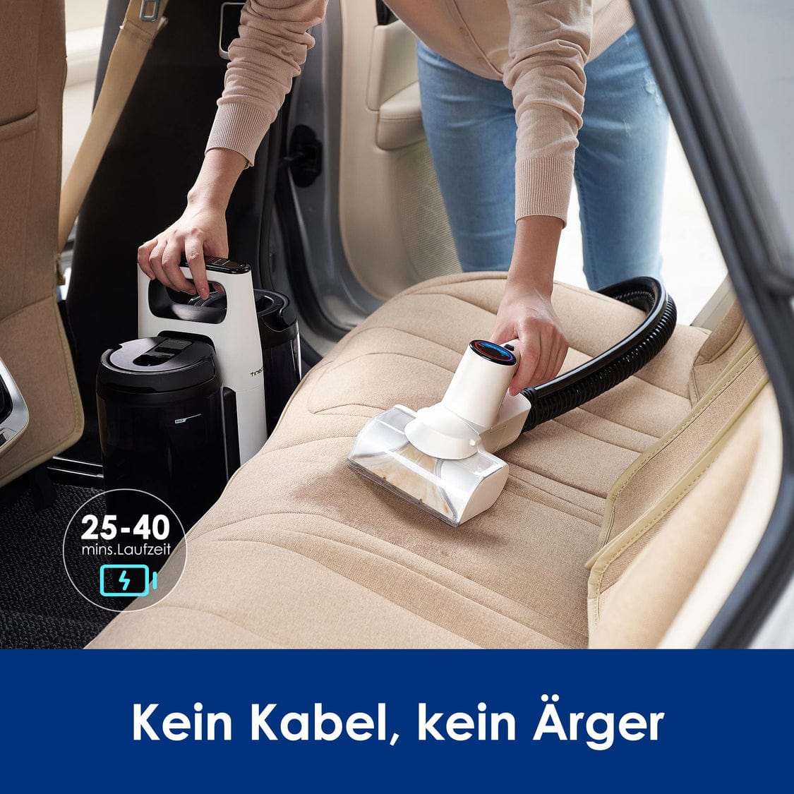 Obendrein ermöglicht die konstante Stromverbindung, dass der Tineco eine unbegrenzte Laufzeit vorweisen kann. So könnt ihr bei Bedarf auch mal die ganze Couch reinigen, was vor allem bei großen Modellen jede Menge Zeit in Anspruch nehmen kann. Aber machen wir uns nichts vor. Natürlich gibt es auch Szenarien, in denen ein Akku durchaus von Vorteil wäre. Das ist insbesondere beim Einsatz außerhalb des Hauses der Fall. Insbesondere die Reinigung der Autositze dürfte hier ein gutes Beispiel sein.