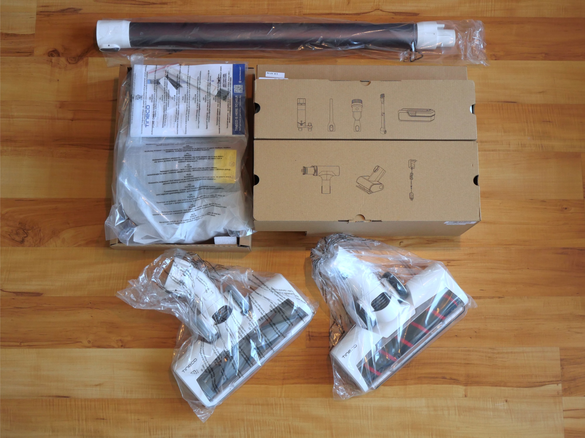 Tineco liefert den Pure One S11 Tango EX in einem relativ kompakten braunen Karton aus. Nach dem Öffnen blicken wir auf das graue metallische Saugrohr und drei weitere kleinere Kartons, auf denen die darin enthaltenen Teile abgebildet sind. Nicht oder nur selten benötigte Teile lassen sich dadurch wieder gut an ihrem vorgesehenen Platz verstauen. Der Lieferumfang ist sehr umfangreich und enthält neben dem Akkusauger selbst eine Vielzahl von Bürsten und Düsen sowie weiteres Zubehör.