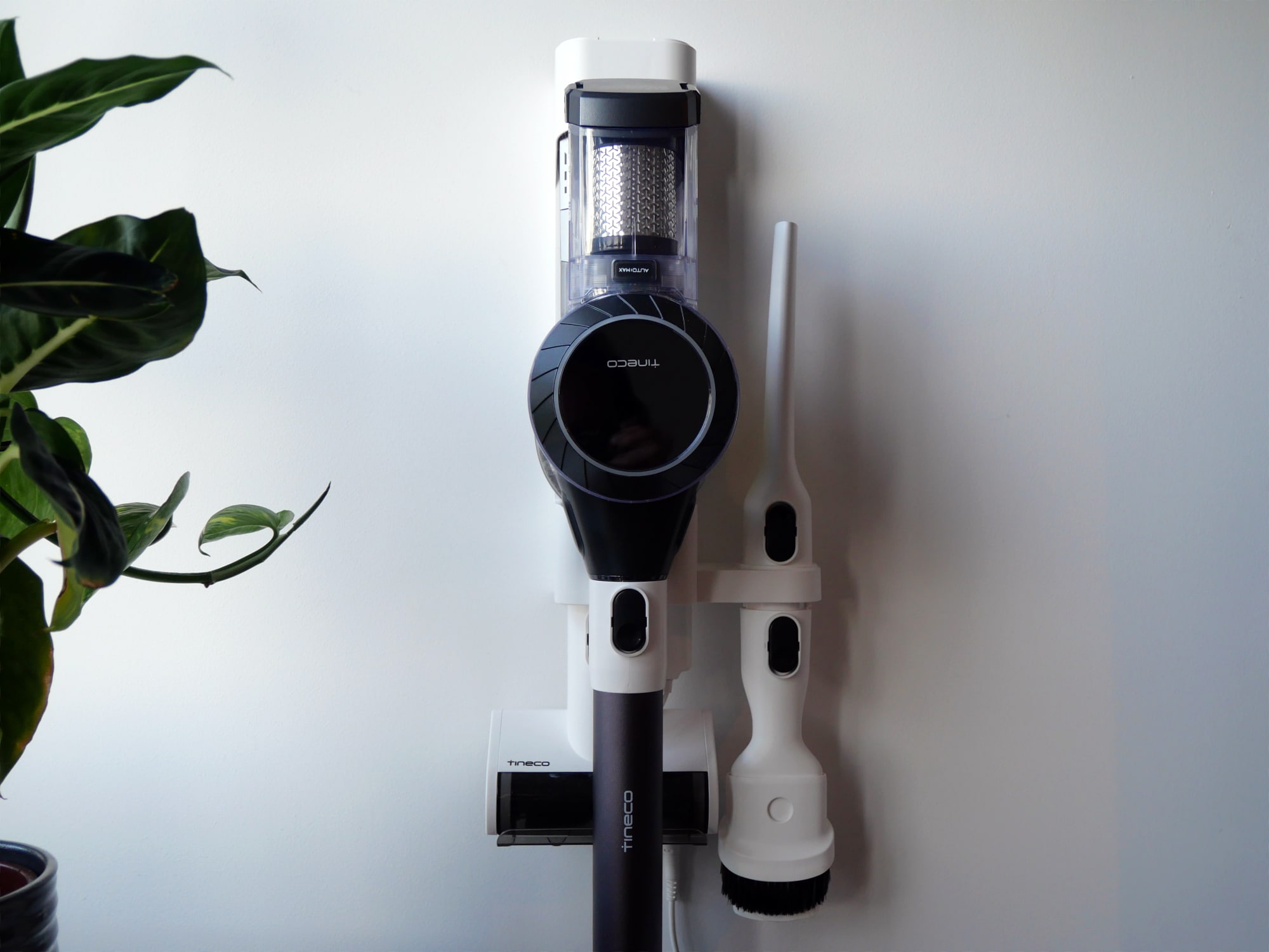 Während Tineco bei anderen Modellen, wie dem Pure One Air Pro, auf eine Dockingstation für den Boden setzt, setzt man beim Pure One S11 Tango EX auf eine Wandhalterung. Diese wird mit zwei Schrauben an der Wand befestigt und bietet Platz für den Akkusauger sowie drei Aufsätze. Der Akku wird automatisch geladen, sobald sich der Pure One S11 Tango EX in der Wandhalterung befindet, weiterhin befindet sich oben an der Wandhalterung auch eine Lademöglichkeit für einen zweiten Akku.