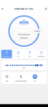 Das runde Display des Pure One S11 Tango EX informiert über die erkannte Staubmenge bzw. die Verschmutzung und weist auf eventuelle Probleme hin. Bei wenig Staub ist der Staubkontrollring am Rand des Displays blau, desto mehr Staub vorhanden ist, desto mehr färbt sich der Ring violett oder dann auch rot. In der Mitte des Displays weisen drei nebeneinander angeordnete Symbole auf mögliche Probleme hin. Von links nach rechts betrachtet leuchten diese auf, wenn die Bürstenrolle verheddert, der Luftkanal blockiert oder der Staubsensor defekt ist. Darüber befindet sich zudem ein WiFi-Symbol. Eine Akkustandsanzeige suchen wir hier leider vergebens, drei LEDs zeigen den groben Akkustand direkt am Akku an.
