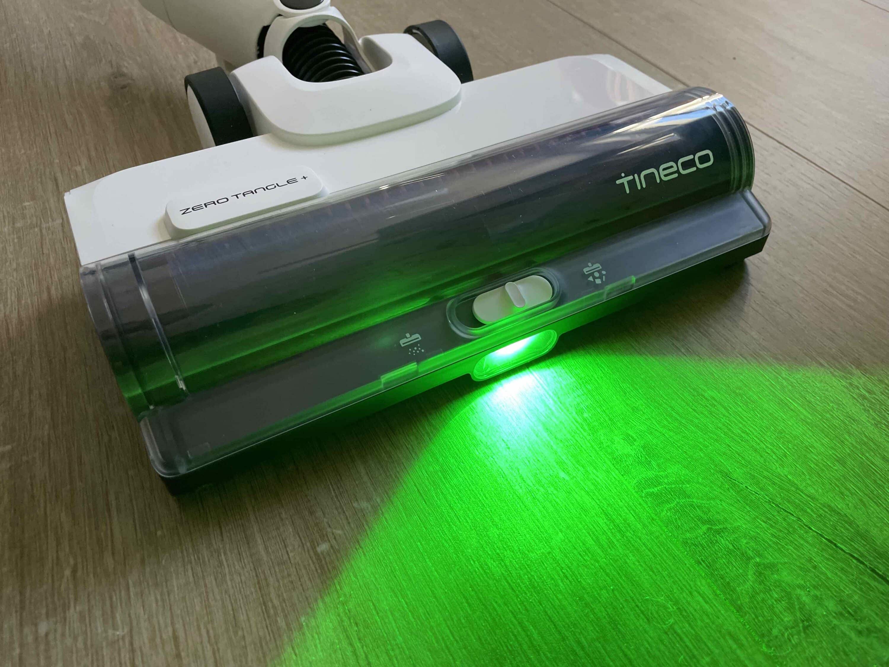 Diese punktet nämlich nicht nur mit ihrer praktischen LED-Beleuchtung, die selbst kleinste Staubpartikel auf dem Fußboden deutlich macht. Dank eines breiten Leuchtwinkels von 120 Grad entgeht dem Lichtkegel dabei kein Staubkörnchen. Obendrein setzt Tineco wieder auf sein Zero-Tangle-System.