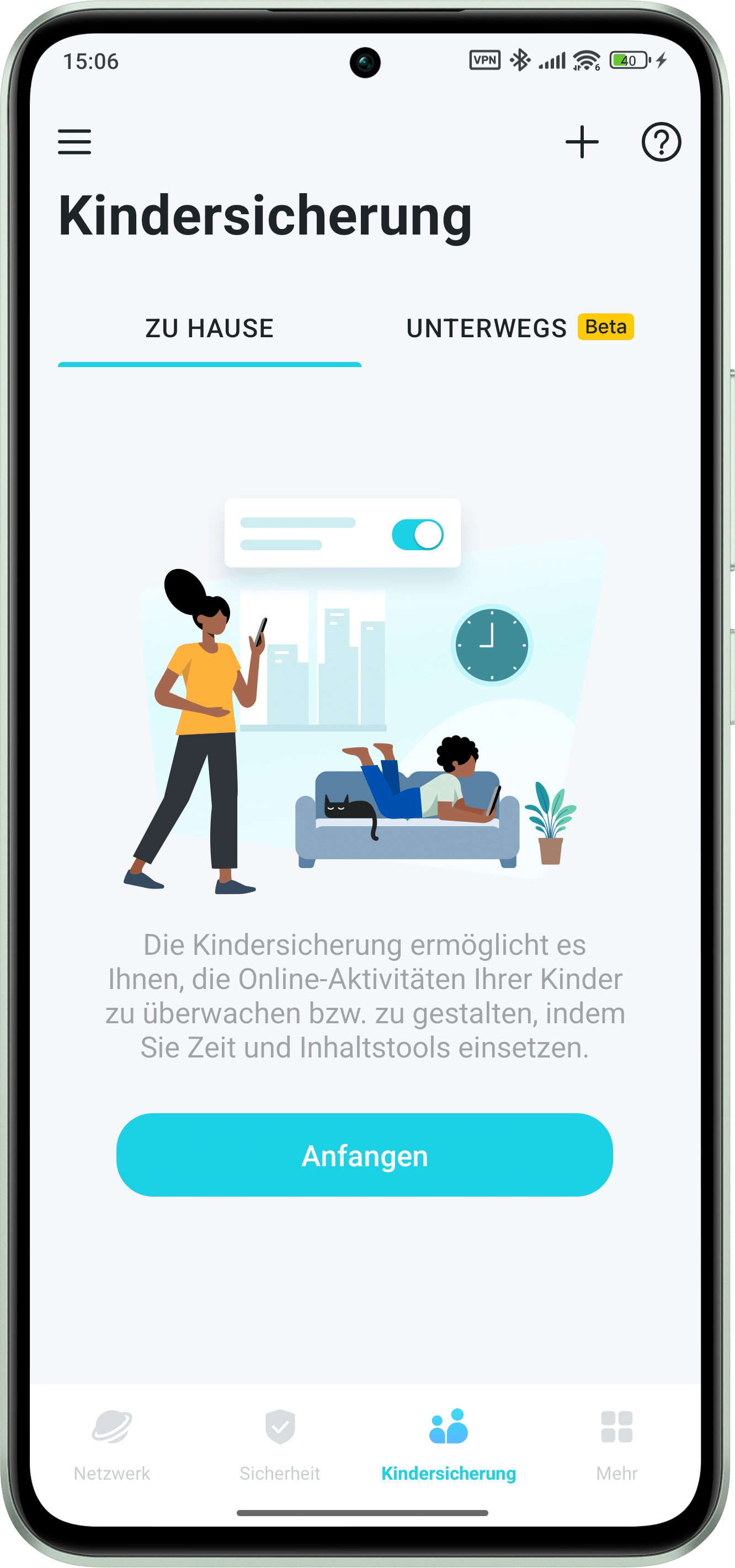 Zusätzlich gibt es einen eigenen Reiter für die Sicherheit. Dort können Netzwerkscans durchgeführt und bestimmte Geräte isoliert werden. Im weiteren Abschnitt zur Kindersicherung kann man die Online-Aktivitäten der Kinder überwachen bzw. einschränken. Dabei bleibt es unabhängig davon, von wo aus zugegriffen wird – sei es im Heimnetzwerk zu Hause oder unterwegs.