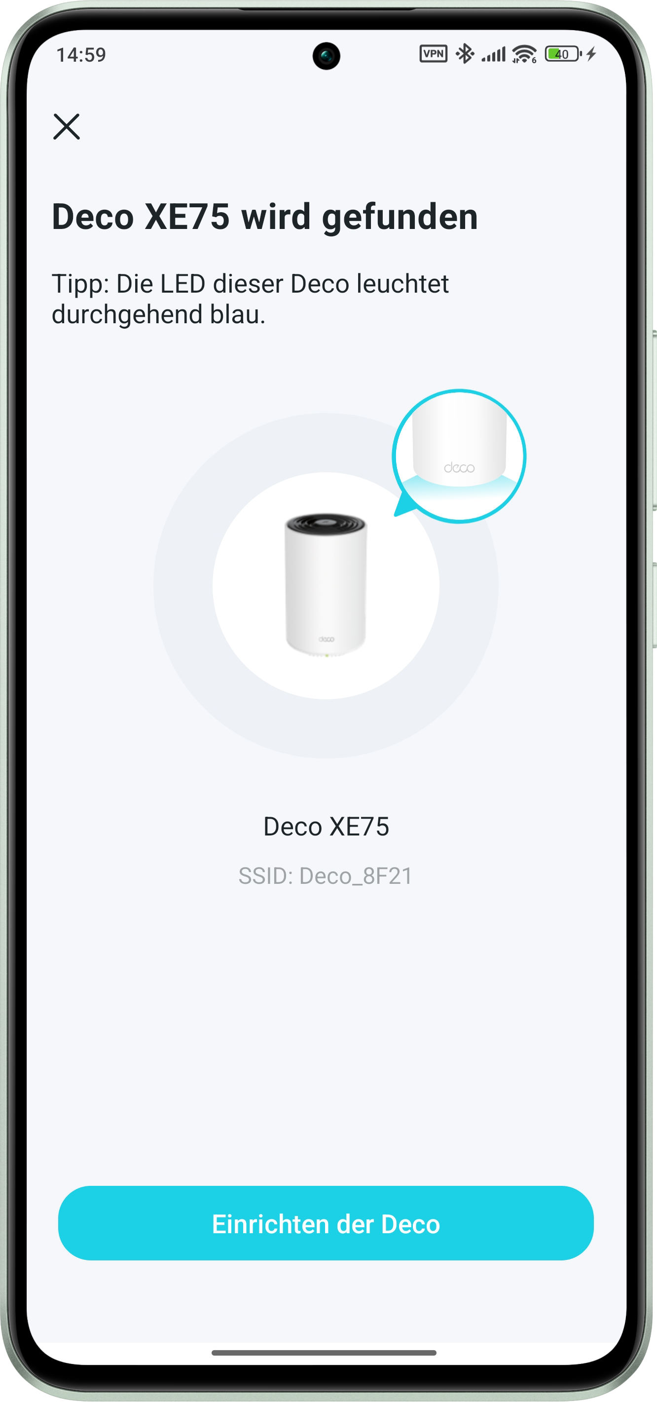 Wenn man später noch einen Deco hinzufügen möchte, geht das ganz einfach über das Plus-Symbol in der App – egal, um welches Modell es sich handelt. Nach der Positionierung und dem Einstecken in die Steckdose erfolgt die Kopplung zum Account bzw. Mesh-System automatisch.