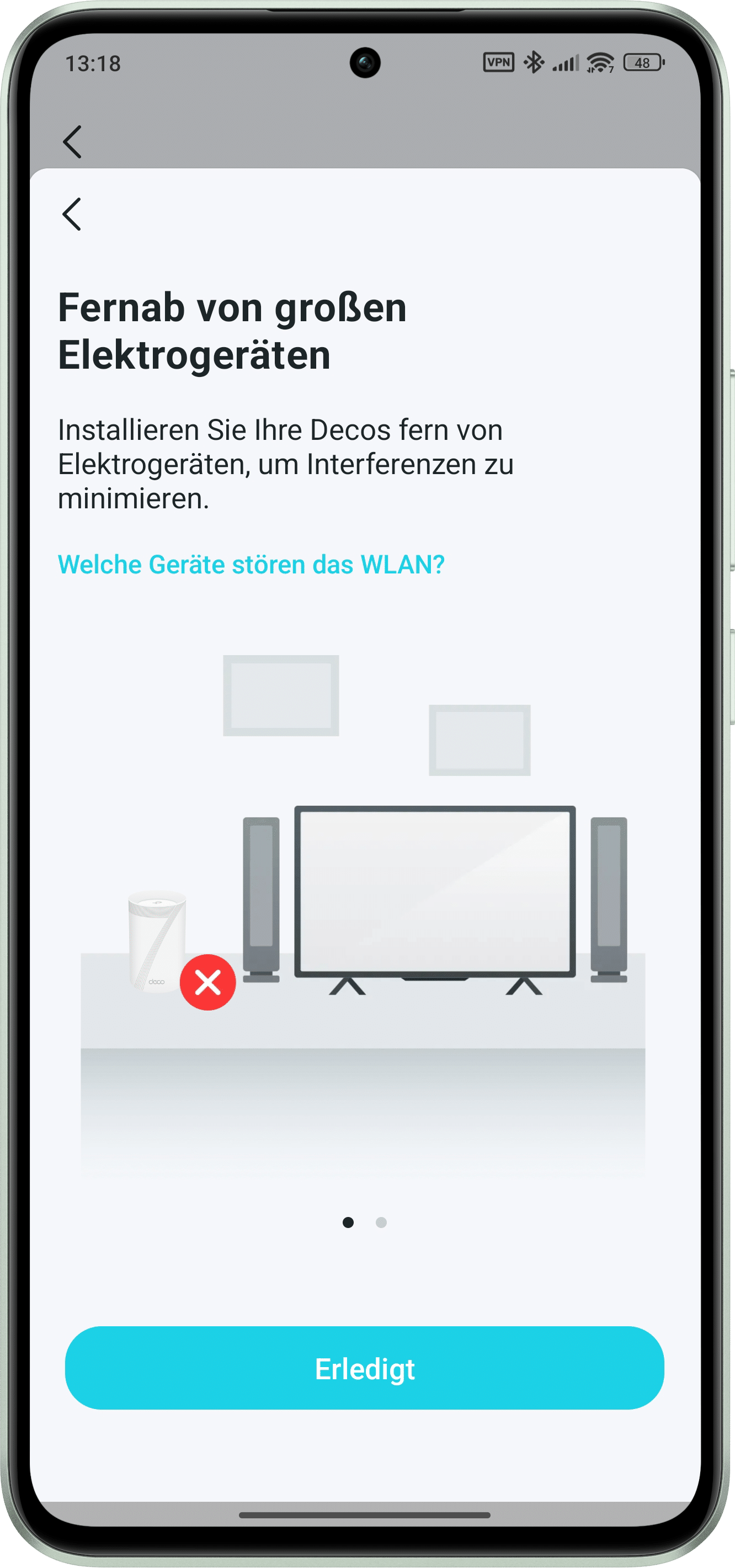 Während des Aufbaus ist lediglich darauf zu achten, die Decos flächenmäßig voneinander zu trennen, um eine optimale Abdeckung zu erreichen. Die Geräte sollten sich außerdem frei im Raum befinden und nicht direkt vor dem Fenster stehen. So wird ausgeschlossen, dass die Funkwellen nach draußen „verpuffen” bzw. das Signal dämpfen.
