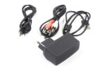 Zum Anschluss liegt ein 3.5 mm Klinke auf Klinke Kabel sowie ein 3.5 mm Klinke auf Finch Kabel bei. Strom bezieht der TP-LINK HA100 über MicroUSB – das nötige Kabel und der Netzadapter liegen bei.