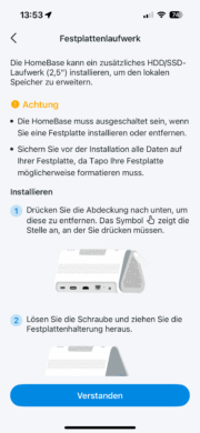 Selbstverständlich ist das nämlich nicht, wie unter anderem der Aqara Hub M3 (€ 110,49 *) oder die Eufy HomeBase S380 (Test | € 149,00 *) zeigen. Das sind streng genommen die beiden wichtigsten Stationen bei der Einrichtung des H500. Während des Einrichtungsprozesses, der nach wenigen Minuten beendet ist, nimmt euch die Tapo App ganz bequem an die Hand. Hier wird euch Schritt für Schritt erklärt, was zu tun ist.