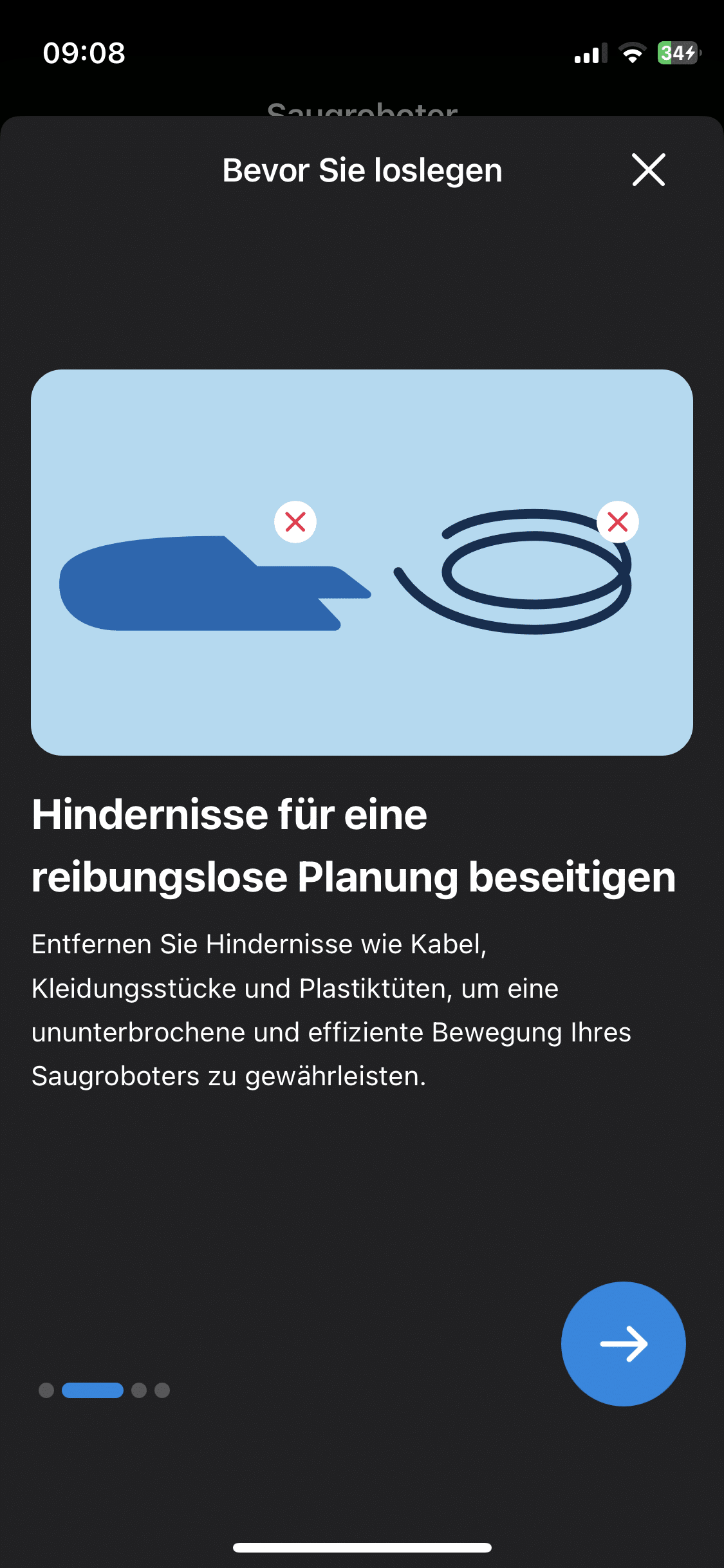 Hier fehlen dem Tapo ganz einfach High-End-Features wie eine anschließende Bildverarbeitung durch KI. Der Grundriss war aber genau genug, um individuelle Anpassungen wie No-Go-Zonen oder unsichtbare Wände einsetzen zu können. Während die Navigation gut funktioniert, war die Hinderniserkennung nicht mehr als befriedigend. Bevor ihr den Tapo durch eure Wohnung fahren lasst, solltet ihr deshalb unbedingt noch einmal aufräumen und vor allem kleinere Dinge vom Boden aufheben.