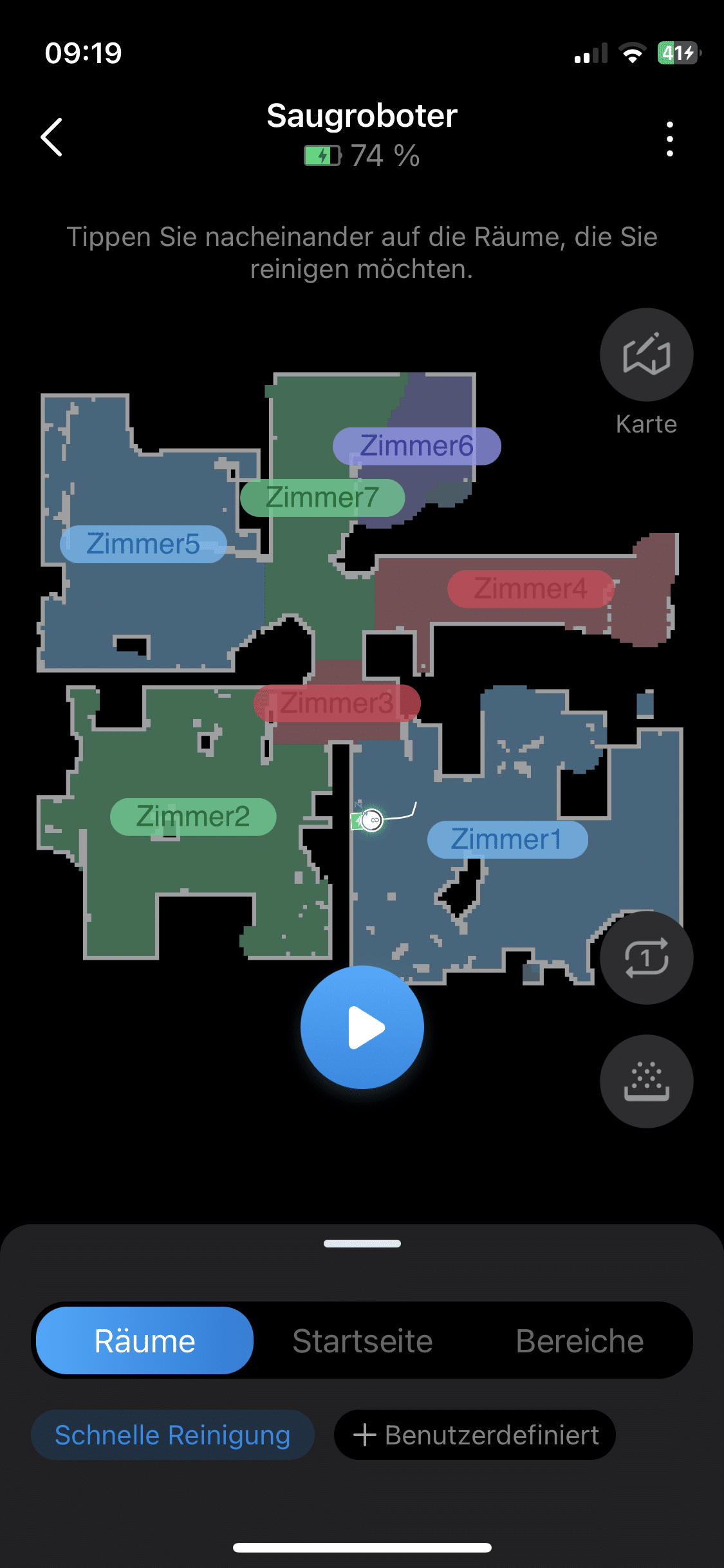 Einmal eingerichtet, kann man mithilfe der App diverse Einstellungen vornehmen. So lässt sich zum einen die Karte bearbeiten, die der Robo von der Wohnung erstellt hat. Sollte der automatisch erstellte Grundriss nicht zutreffen, lassen sich ganz einfach Änderungen vollführen. Insgesamt können übrigens drei verschiedene Etagen gespeichert werden.
