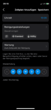 Weiterhin kann man den Roboter während seiner Reinigungstour kontrollieren und in Echtzeit auf der Karte nachvollziehen, wo er gerade saugt oder wischt. Mithilfe eines Zeitplans kann man als Nutzer darüber hinaus festlegen, zu welchen Zeiten der Robo zum Einsatz kommen soll. Darüber hinaus lassen sich über die App auch Einzelheiten zur Reinigung regulieren.