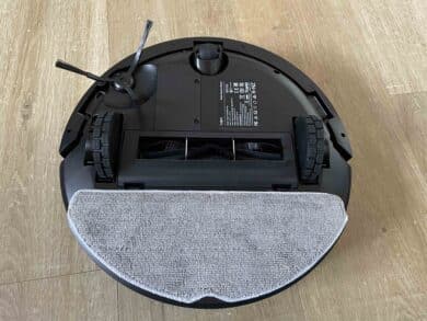 Während an der Front die Technik zur Hinderniserkennung sitzt, befindet sich am Heck der Wassertank, der sich blitzschnell ein und ausbauen lässt. Dreht man den Sauger auf den Kopf, weckt auch die Unterseite Erinnerungen an die Basisversion.
