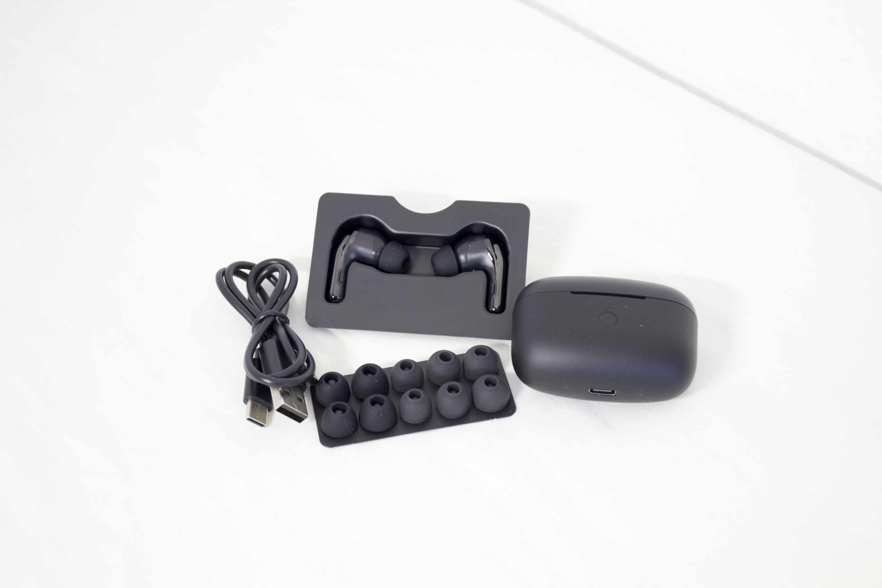 In dem handflächengroßen Karton der Tribit FlyBuds C1 verbirgt sich so einiges. Neben einem Lade-Etui, das gleichzeitig auch für den Transport gedacht ist, finden wir ein USB-C-Ladekabel und einen Haufen wechselbarer Ohrstöpsel. Mit den Ohrstöpseln sollten die Kopfhörer somit in eigentlich jedes Ohr passen und perfekten Komfort bieten. Selbstverständlich liegt noch eine mehrsprachige Bedienungsanleitung dabei.
