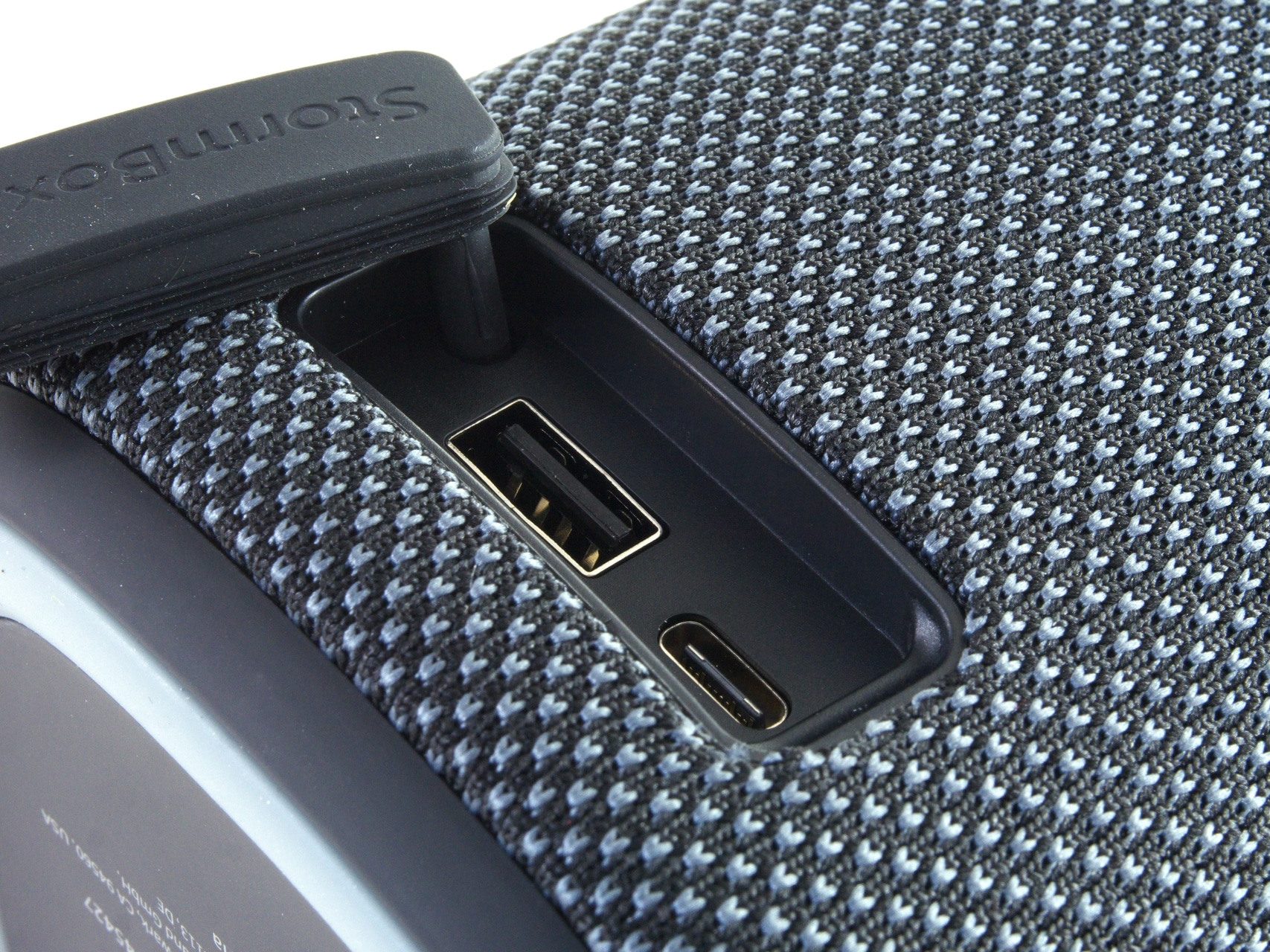 Glaubt man den Produktbildern von Tribit, so befinden sich in den Stormbox Pro fünf akustische Elemente. Seitlich unter den Henkeln sind die beiden Hochmitteltöner untergebracht, vorne und hinten die Passivmembranen. Für den Bass ist hingegen ein Tiefmitteltöner verantwortlich, der mittig im Gehäuse untergebracht ist und die Schallwellen seitlich ausgibt.