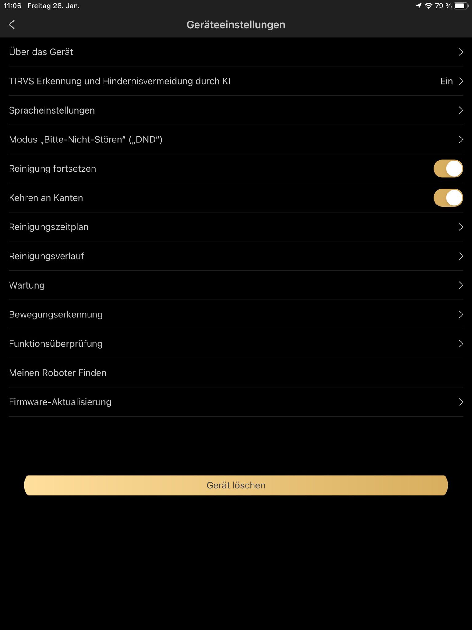 Bevor wir den ersten Lauf gestartet haben, haben wir uns in den Einstellungen etwas umgeschaut. Hier lassen sich einige Optionen, wie zum Beispiel die Alexa-Komptabilität oder Firmware-Updates verwalten. Zweiteres haben wir vor einem Start durchführen lassen. Besonders wollen wir noch die Wartungsfunktion hervorheben, hier lässt sich die genaue Zeit und Benutzung der Düse ohne Wartung anzeigen.
