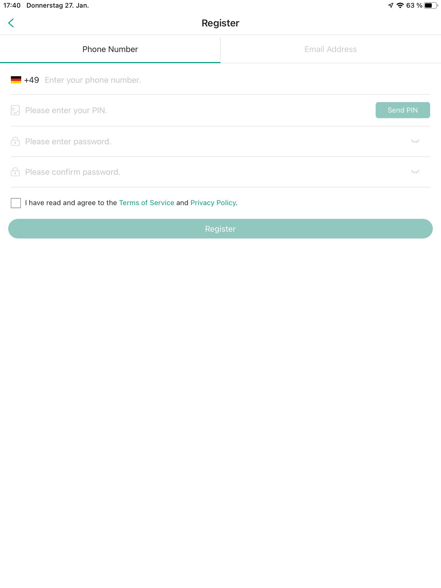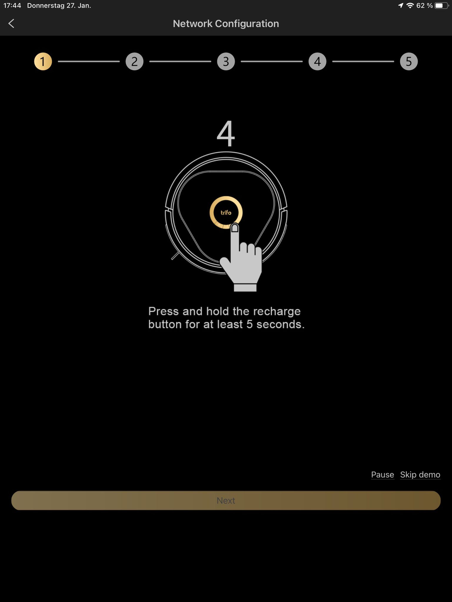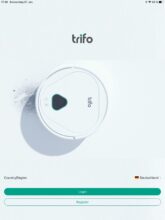 Für die Einrichtung des Staubsaugroboters Lucy muss man sich zunächst die App des Herstellers herunterladen. Zu finden ist diese unter dem Namen „Trifo Home“ im Google- sowie Apple-App-Store. Nach einer kurzen Wartezeit des Downloads kann die Einrichtung beginnen. Der erste Schritt findet mit einer Registrierung in der App statt. Dafür bekommt man zwei Optionen angeboten, entweder per Handynummer oder per E-Mail. Füllt man dies aus und bestätigt es, landet man auf der Startseite der App.