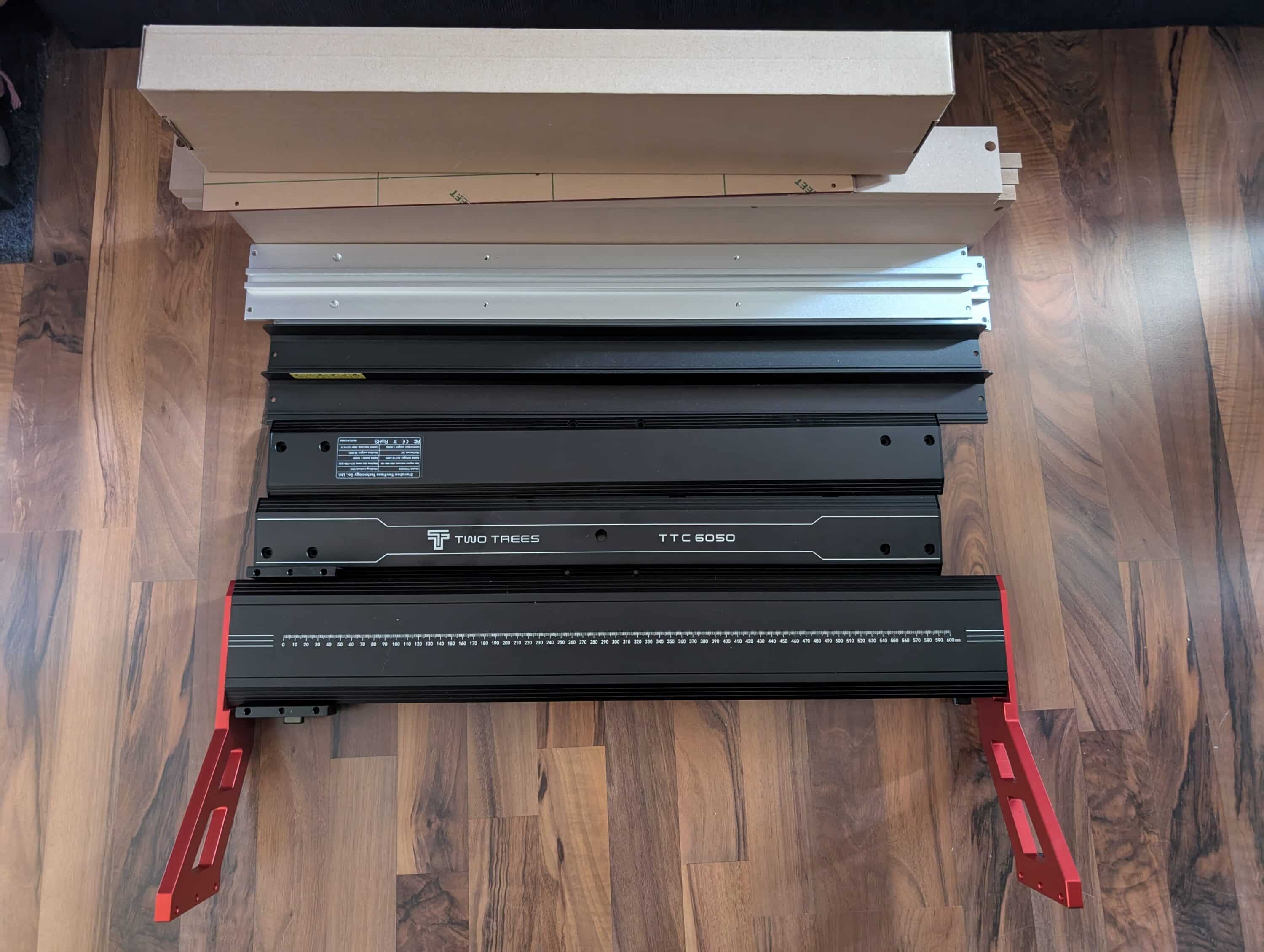 Der Aufbau der Twotrees TTC-6050 für unseren Test erforderte Zeit und Geduld. Wir haben gut 2,5 Stunden reine Montagezeit benötigt, dazu kommt noch Zeit für das Studium der Anleitung und kleinere Justierarbeiten. Wer schon mal eine kleinere CNC-Fräse aufgebaut hat, wird sich schneller zurechtfinden, doch an manchen Stellen wird es durchaus knifflig. Die Anleitung führt logisch durch den Aufbau, beginnend mit dem Grundrahmen. Alle Aluminiumprofile sind präzise gefräst und passen millimetergenau zusammen. Die Verbindungen erfolgen über robuste Schraubverbindungen, die auch nach längerem Betrieb stabil bleiben sollten.