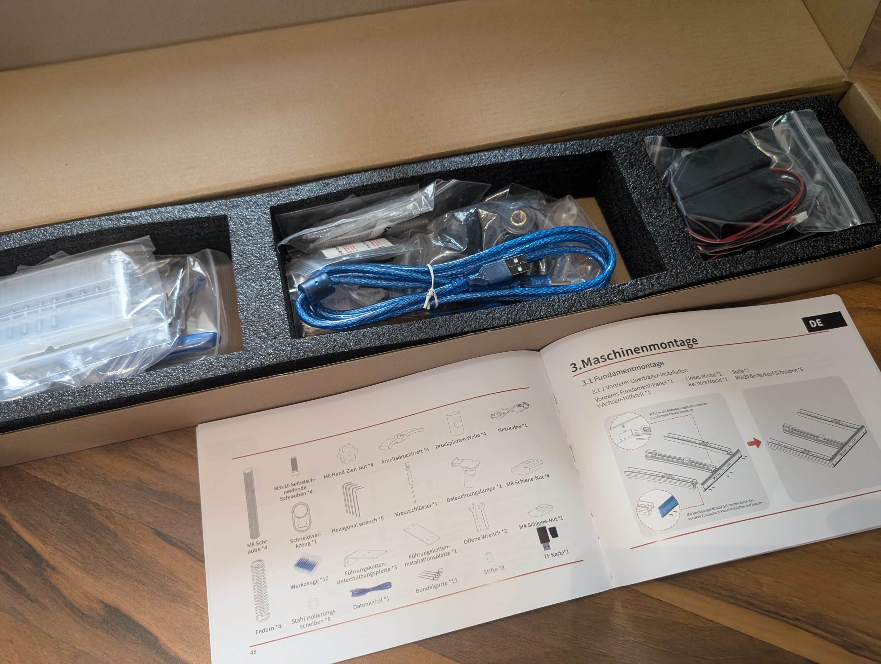 Besonders positiv fällt die Organisierung der Kleinteile auf. Alle Schrauben, Muttern und Verbindungselemente sind in beschrifteten Tüten verpackt. Jede Schraube hat eine eindeutige Kennzeichnung, die sich im bebilderten Handbuch wiederfindet. Das erspart stundenlanges Suchen und Rätseln, wie es bei anderen Bausätzen oft der Fall ist.