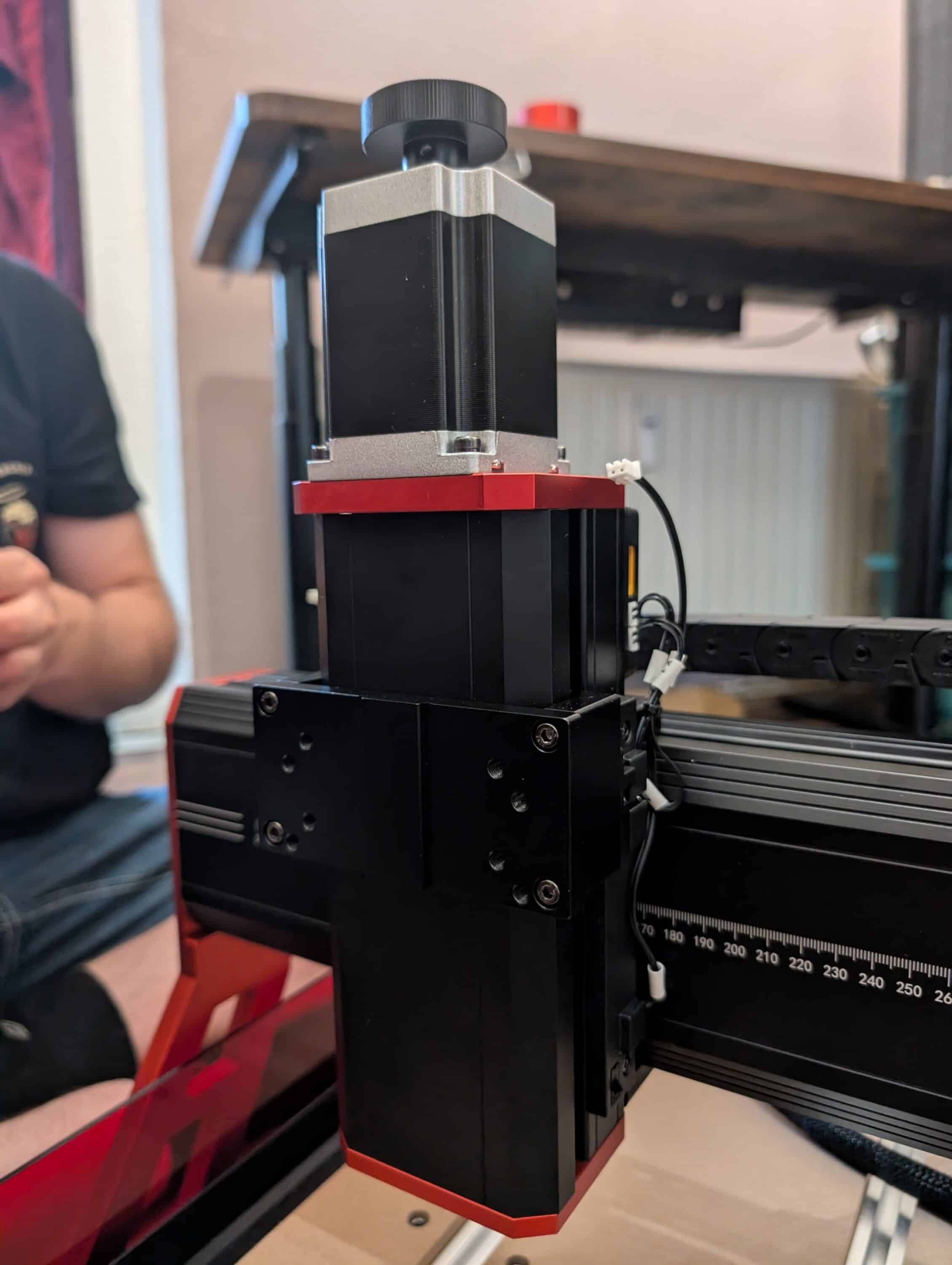 Bei unserem Testgerät hatten wir ein kleines Problem mit der zentralen Z-Achse, die anfangs merkbares Spiel hatte. Die ersten Testschnitte zeigten leichte Ungenauigkeiten und Vibrationsmarken an den Seitenwänden. Eine Überprüfung zeigte, dass eine der zentralen Verbindungsschrauben nicht richtig angezogen war. Nach dem Nachziehen verschwanden alle Probleme sofort. Die Schnitte wurden präzise und die Oberflächen glatt. Das zeigt, wie wichtig eine sorgfältige Montage ist, aber auch, dass sich solche Probleme meist schnell beheben lassen.