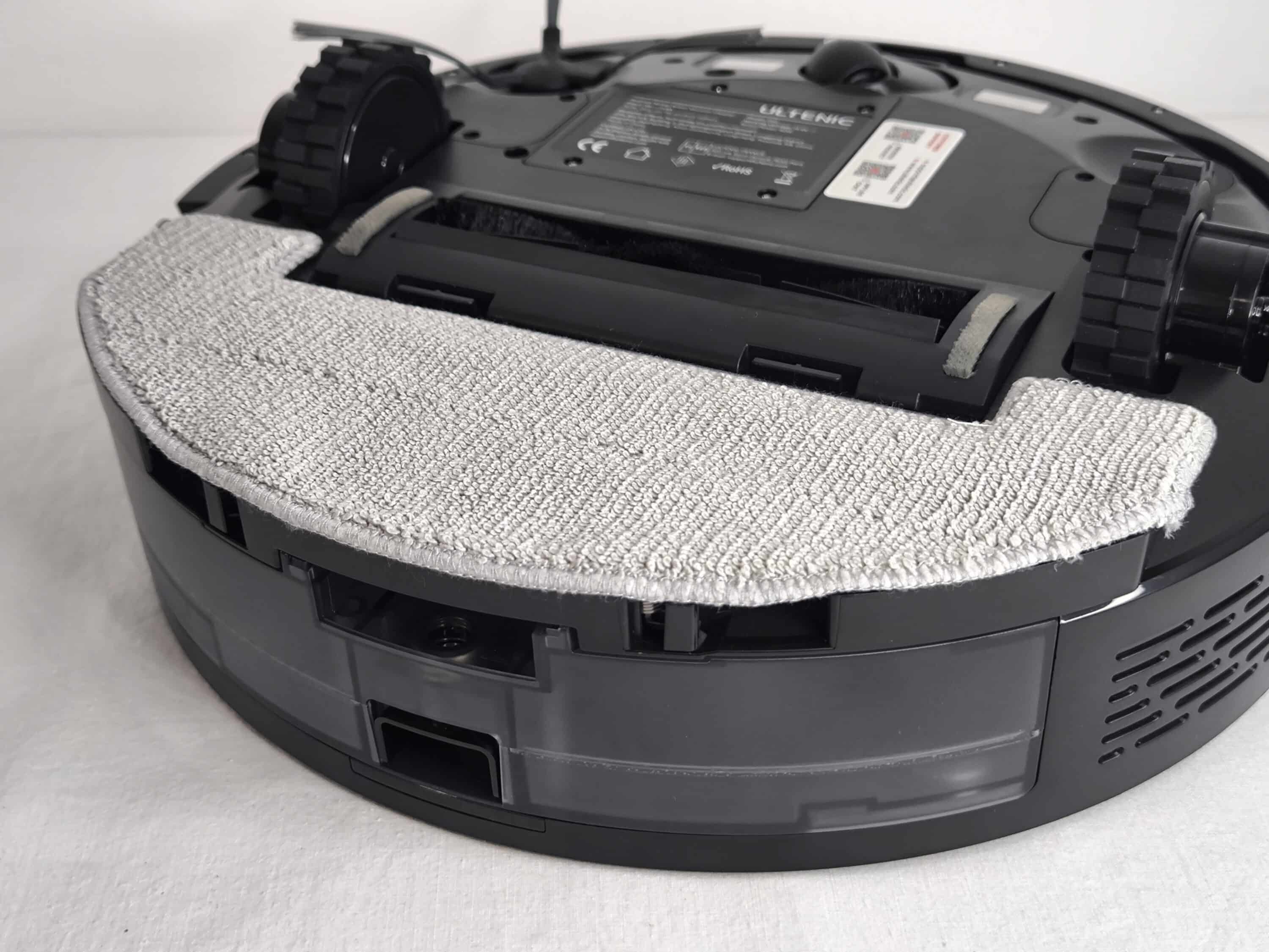 Wie fast alle heutigen Saugroboter verfügt auch der Ultenic D10 über eine Wischfunktion. Wie in dieser Preisklasse üblich, wird hier auf ein einfaches, feuchtes Wischtuch gesetzt. Teurere Modelle setzen dagegen auf zwei rotierende Tücher für eine noch höhere Reinigungsleistung. Ungeachtet dessen erzielt der Ultenic D10 nur in den beiden stärksten Wasserfluss-Stufen einen sichtbaren Wischeffekt. Es empfiehlt sich also, für eine einfache Reinigung die stärkste Stufe einzustellen. Wer dagegen lieber gleich auf eine doppelte Reinigung setzt, für den ist die zweitstärkste Stufe ausreichend.