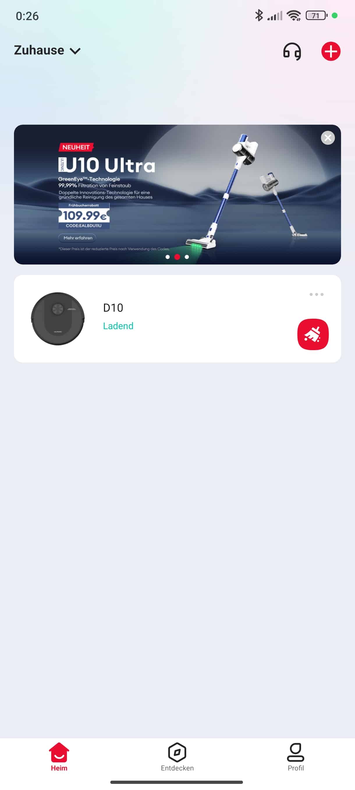 Die herstellereigene App mit dem schlichten Namen „Ultenic“ bietet in der Tat ein breites Spektrum an Funktionen, selbst für den preisgünstigen Saugroboter Ultenic D10. Nach dem Erstellen eines Accounts wird die Ersteinrichtung gezielt mit Videos erklärt und einige Hilfestellungen bei Fehlern gegeben. Das Koppeln mit dem hauseigenen 2,4 GHz WLAN funktionierte bei uns hingegen problemlos.