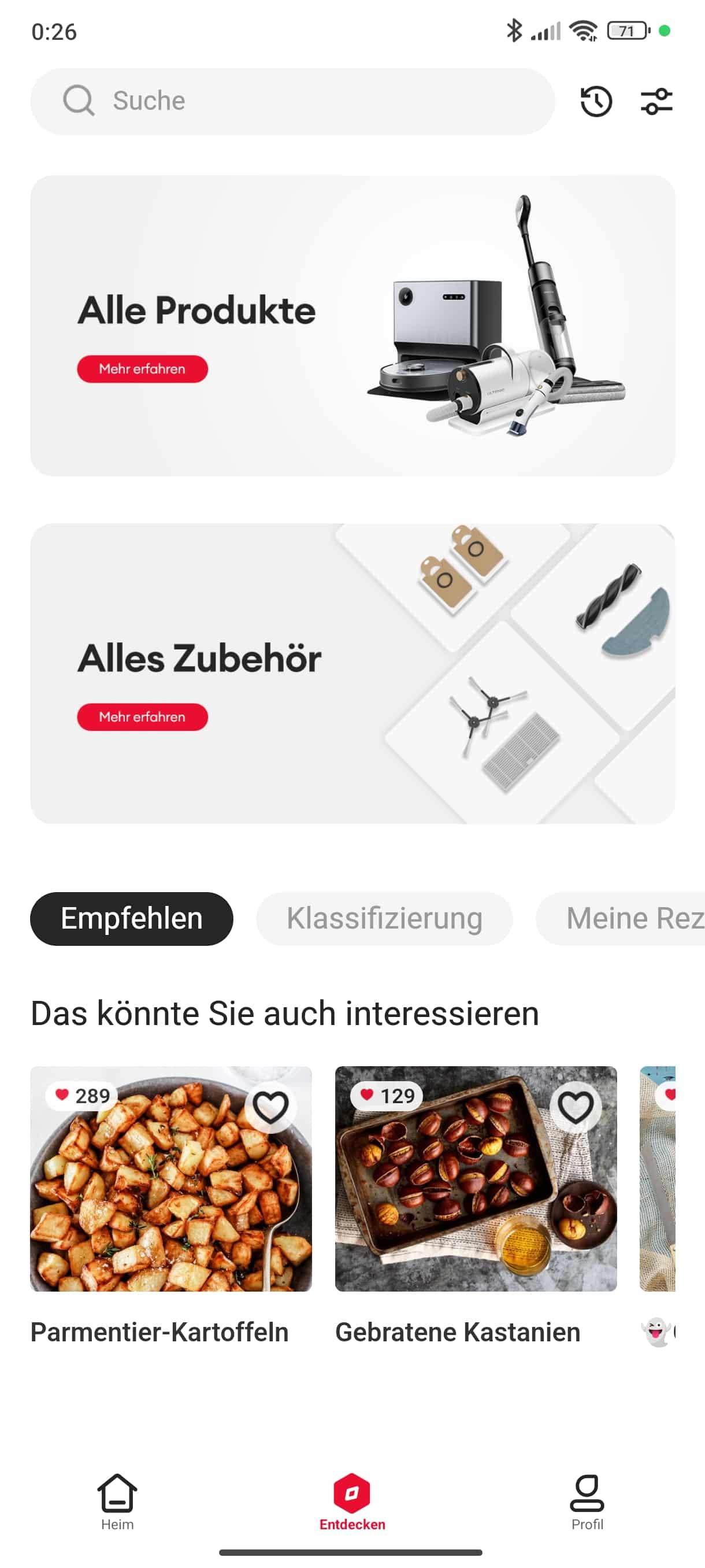 - Bietet Kartenanzeige, Auswahl zur Raumreinigung und Sprachassistentenintegration