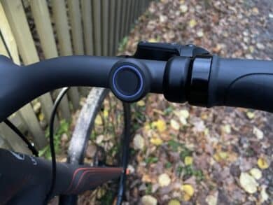 Um das Fahrrad zu entsperren, nutzt du den Fingerabdrucksensor am rechten Handgriff. Während der Fahrt dient er wiederum als Klingel, wenn du den Knopf kurz drückst oder aber zur Aktivierung des Sprachassistenten beim langen Drücken. Richtig gehört. Du kannst dem E-Bike auch Sprachbefehle geben und so mit deiner Stimme beispielsweise den Blinker aktivieren. Das funktionierte in der Praxis sehr gut, kann aber für schräge Blicke von Passanten sorgen.