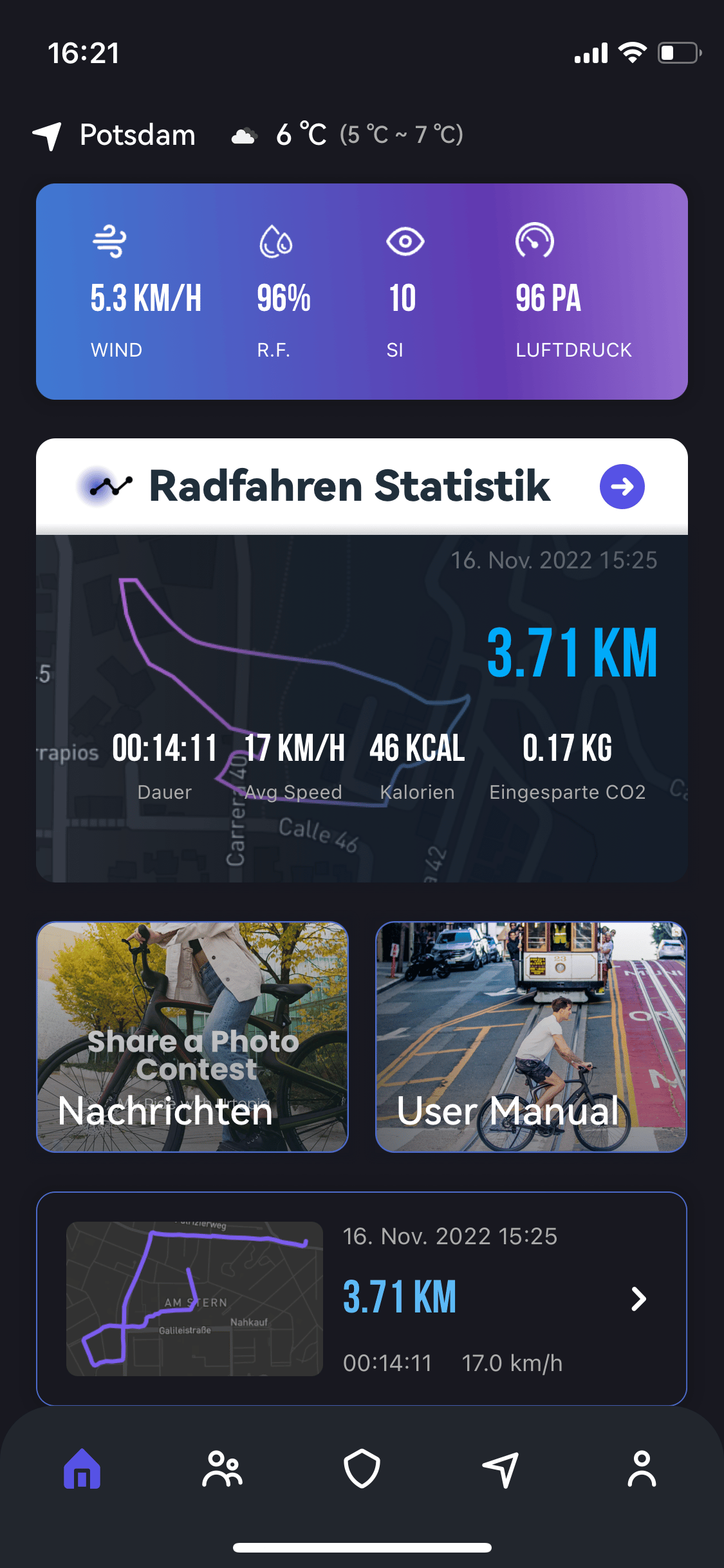 Statistikfreunde werden sich wiederum daran erfreuen, dass man in der App detailliert seine Fahrten nachverfolgen kann. Neben zurückgelegter Strecke, Durchschnittsgeschwindigkeit und verbrannten Kalorien verschafft dabei auch die Angabe des eingesparten CO²s ein gutes Gefühl. Wer sich für den Kauf des exklusiven Carbon-Fahrrads entscheidet, muss sich außerdem nicht davor fürchten, es zu verlieren.
